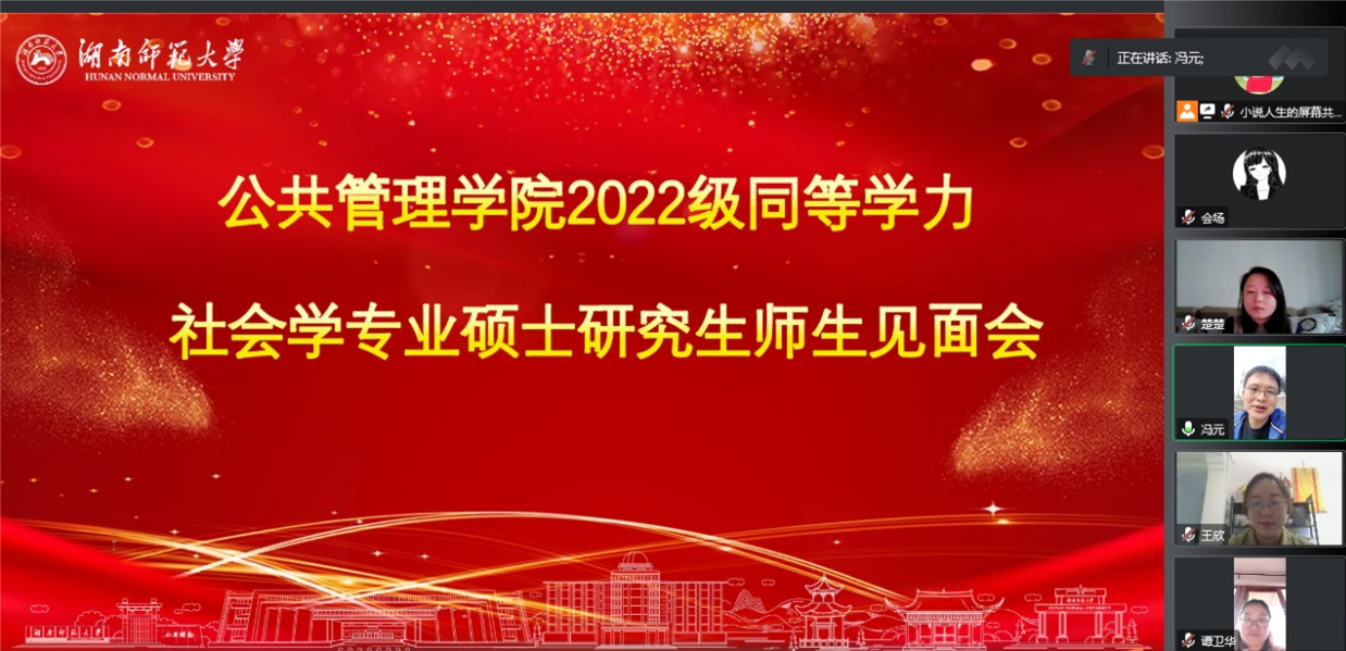 (通讯员 钮轶潇)10月23日上午,公司2022级同等学力申硕研究生班开学典礼暨师生见面会在景德楼南栋三楼学术报告厅隆重举行。本次活动以线上线下相结合的方式开展。beats365官方网站经理、博士生导师毛新志教授,beats365官方网站副经理、政治学硕士点负责人、博士生导师王敏教授,社会学硕士点代表教师郭庆副教授,哲学硕士点代表教师黄泰轲博士,研究生办主任陈怡,蘧垣志老师参加线下会场;beats365官方网站副经理、博士生导师李超民教授及2022级同等学力申硕研究生参加线上会场。开学典礼由王敏副经理主持。