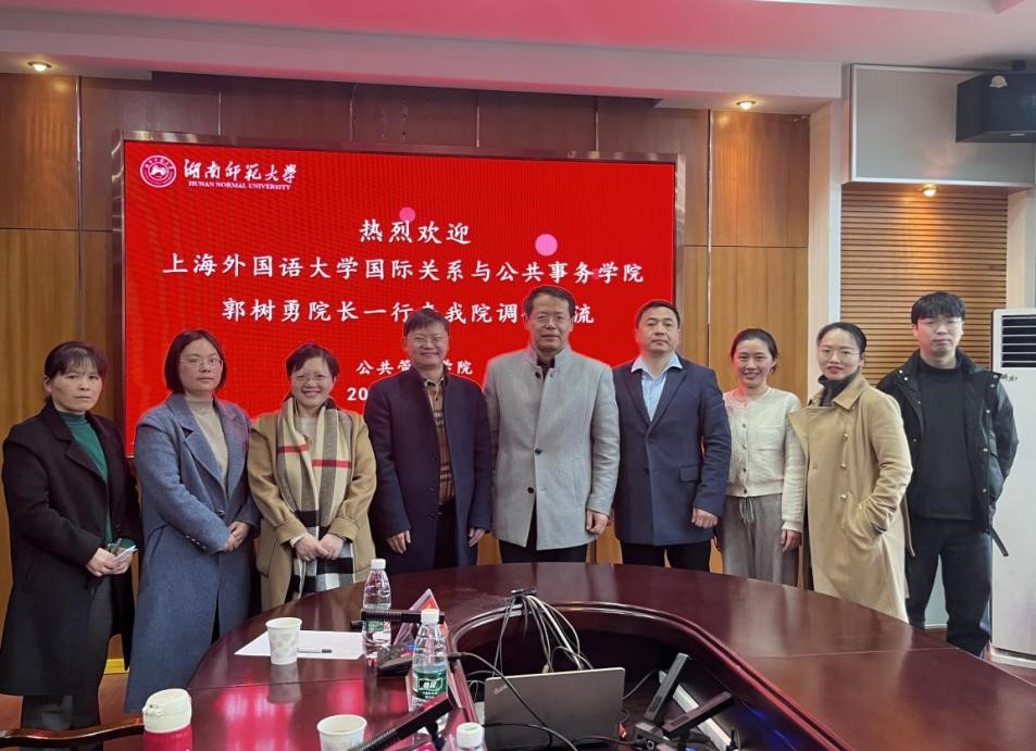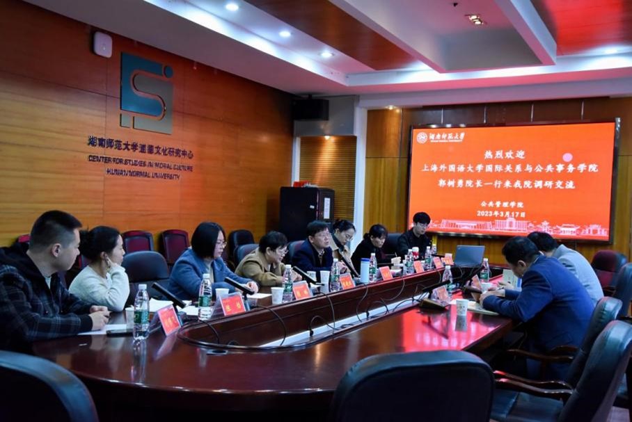 (通讯员 黄盈盈)2023年3月17日上午,上海外国语大学国际关系与公共事务公司经理、教育部政治学类专业教学指导委员会委员郭树勇教授和经理助理杜峰老师莅临公司调研交流。座谈会于公司景德楼中栋415会议室举行。公司经理毛新志教授、陈晓红教授、颜琳副教授、MPA教育中心执行主任刘茜副教授、研办主任陈怡老师、石娉婷老师、胡耀飞老师及MPA教育中心秘书蘧垣志老师出席会议,此次会议由陈怡老师主持。