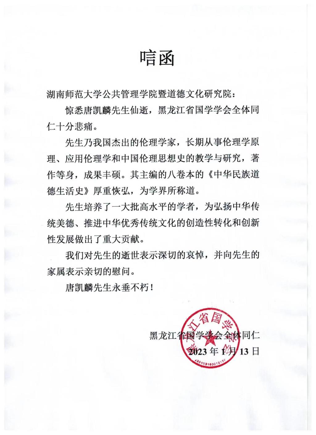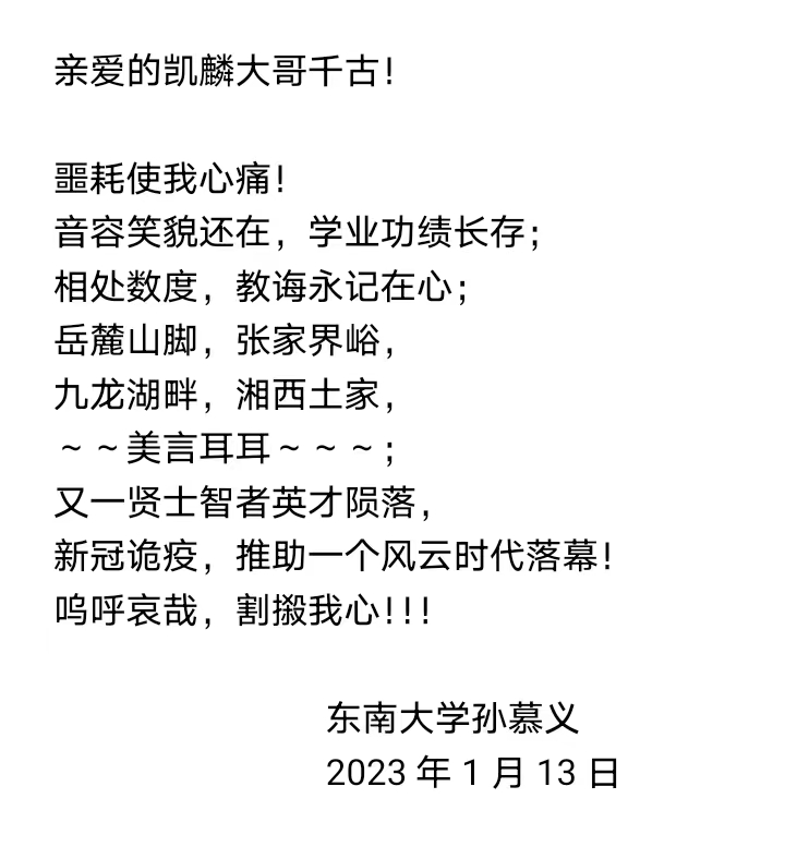 唐凯麟先生驾鹤西去,及门弟子兰甲云泣拜撰联,以寄哀思。