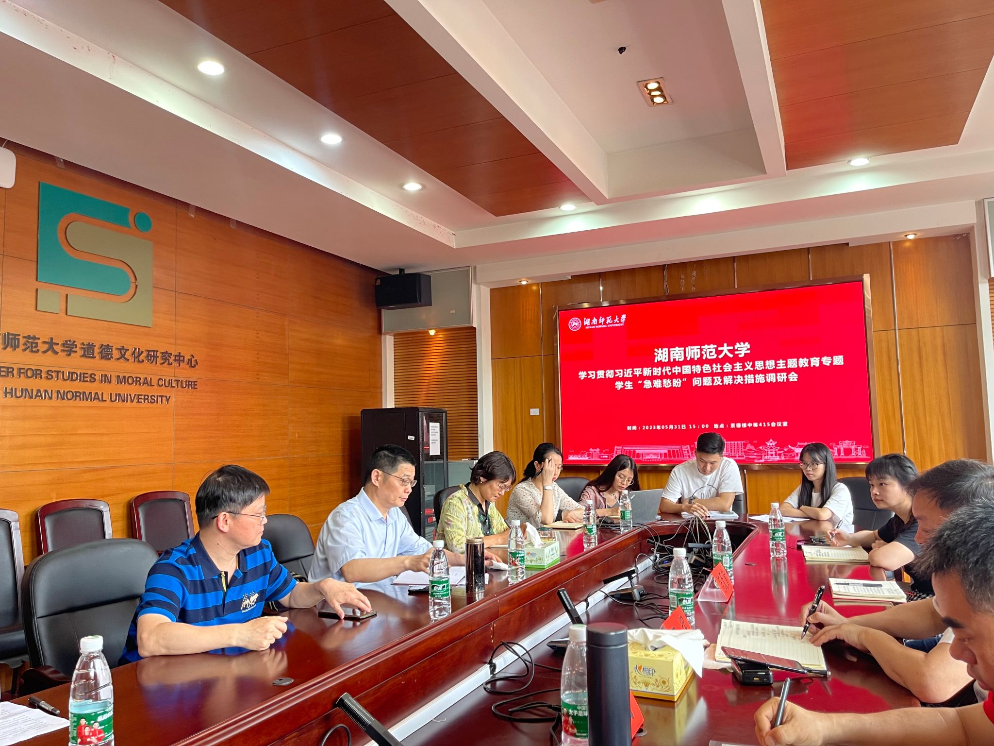 校团委书记陈天嵩,招生与就业指导处处长田野,教务处副处长朱浩浩,公共管理公司党委书记余望成、党委副书记孙雯波、学工办主任林哲旭、教务办主任肖大卉、2019级辅导员段潇涌及各年级员工代表参与此次调研会。