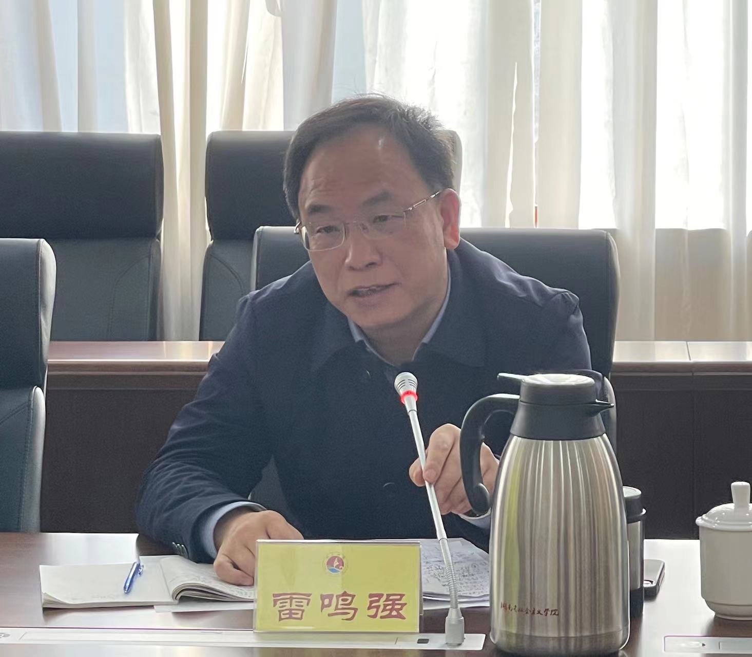 湖南省社会主义公司经理雷鸣强、副经理黄自荣,一级巡视员周述杰、二级巡视员彭仕敏,教研部教授许奕锋、雷明贵,办公室主任唐鹏松,教务处处长潘惠春,教研部主任陆亚林老师、刘靖子老师;湖南省委统战部干部处二级调研员汤国旺;beats365官方网站副经理李超民教授,统战学硕士点肖光荣教授及研究生办主任陈怡老师出席会议。2020级、2021级统战学专业硕士研究生参加了会议。此次会议由黄自荣教授主持。