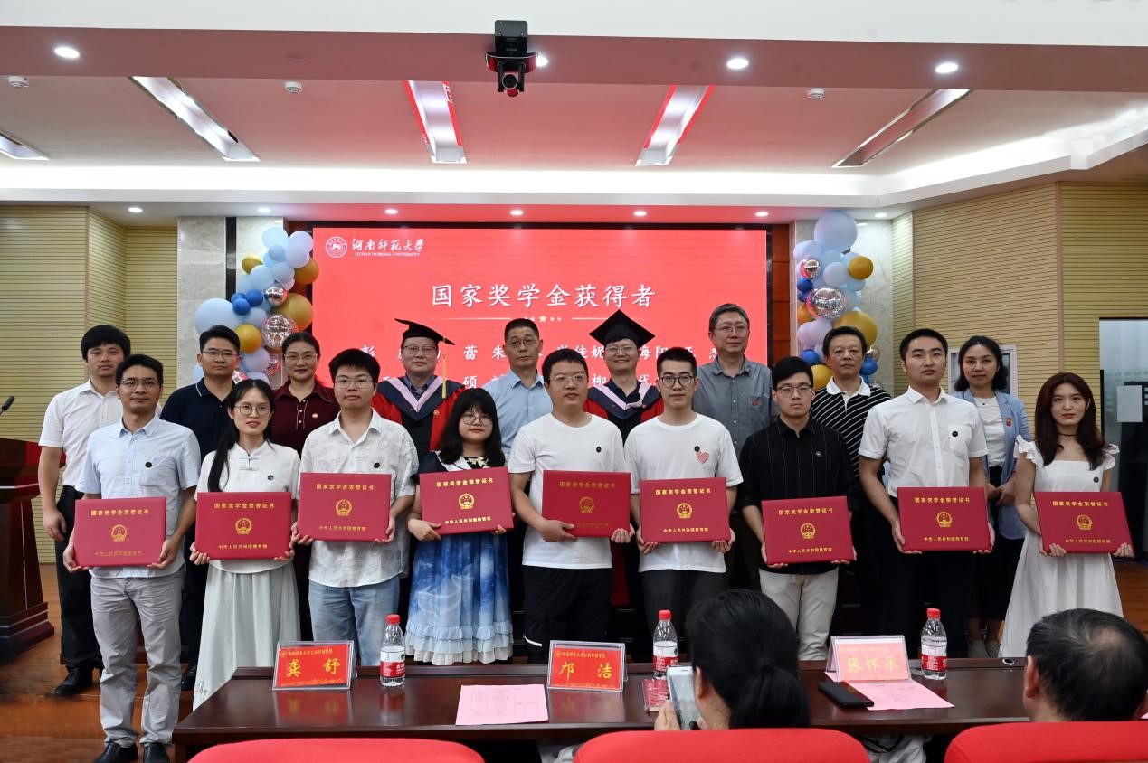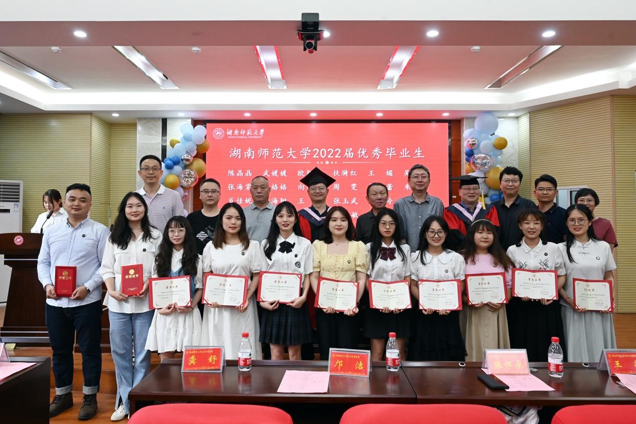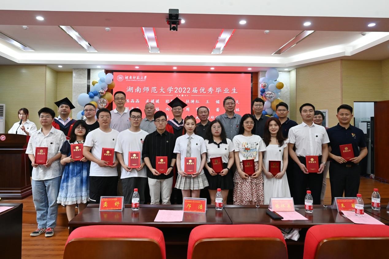 公司领导及各学位点负责人向国家奖学金、湖南省优秀毕业生、beats365官方网站优秀毕业生颁发荣誉证书。获奖同学依次上台领奖,并与各位领导和老师合影留念。