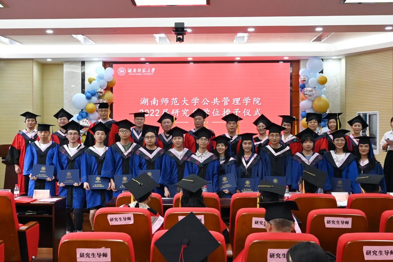 学位授予仪式上,各学位点导师为毕业研究生颁发毕业证、学位证,拨动流苏,授予学位并合影留念。随后师生合唱《明天会更好》,祝愿2022届毕业研究生怀揣着母校的真挚祝福、师长的谆谆教诲,以师大公管院为起点,向新的未来进发,用充满朝气的青春去拥抱明天的太阳,明天会更好。