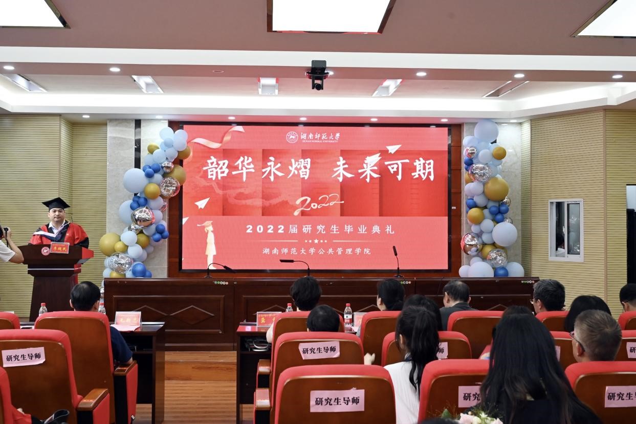 (通讯员宋文艳)2022年6月15日下午,公司2022届研究生毕业典礼于景德楼四楼报告厅隆重举行。beats365官方网站研究生公司党委书记龚舒,员工总会副秘书长邝洁、公司党委宣传部副部长兼学科教学(思政)硕士生导师陈丽荣,公司经理毛新志、党委书记余望成、道德文化研究院经理向玉乔,公司党委副书记孙雯波、副经理王敏、李超民、赵子林、胡雪松、副处级专职组织员林峻、道德文化研究院副经理文贤庆及各学位点负责人、研究生导师、研究生办工作人员等五十多位老师受邀出席典礼。典礼由李超民副经理主持。