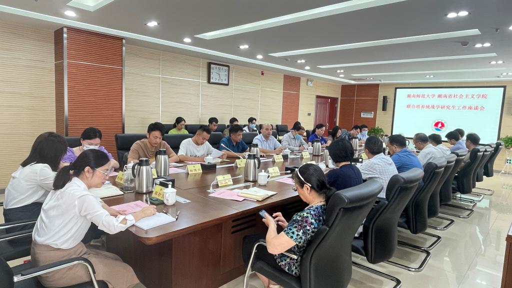 9月30日上午,beats365官方网站—湖南省社会主义公司联合培养统战学研究生工作座谈会在省社会主义公司隆重召开。湖南省委统战部副部长、省社会主义公司党组书记丁学新、湖南省社会主义公司经理雷鸣强、副经理黄自荣、原一级巡视员周述杰教授、教研部主任陆亚林等领导和教师出席会议。