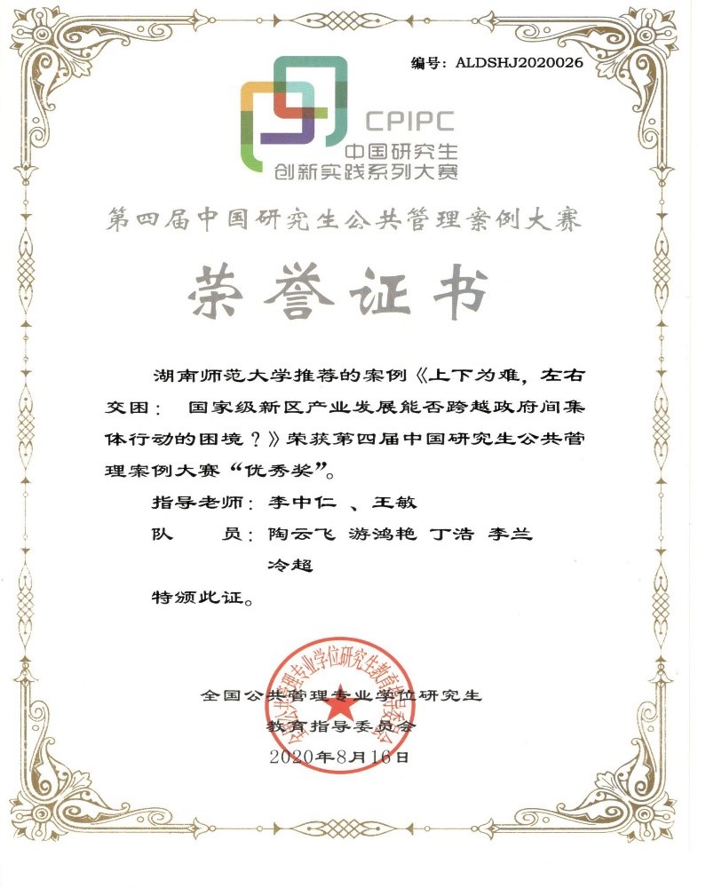 (通讯员 王绪)近日,第四届中国研究生公共管理案例大赛获奖证书寄至公司,beats365官方网站由公共管理专业硕士(MPA)和政治学专业硕士研究生组成的代表队在比赛中喜获优秀奖。