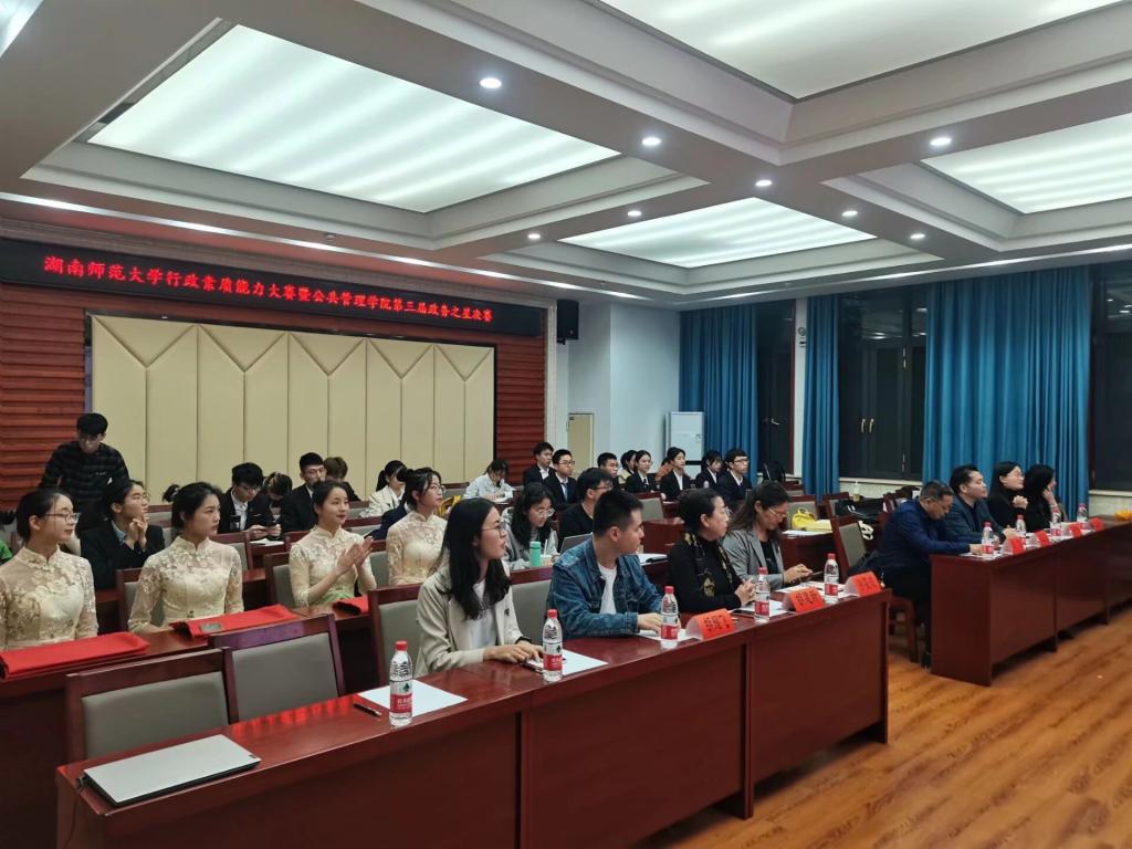 (通讯员 李诗语 冯润志 邓博瑞)4月15日晚19时至22时,beats365官方网站行政素质能力大赛暨beats365官方网站第三届政务之星总决赛在公管院博后楼学术报告厅举行。此次比赛的参会人员有招生与就业指导处副处长周俊,公管公司党委副书记孙雯波,公管院社会学系老师胡建新,考德上教育董事长田亚东,考德上教育河西分校董事长邓叶琴,招生与就业指导处就业管理科王术芳老师,公管院团委书记、学工办主任林哲旭老师,18级辅导员曹滟梅老师,19级辅导员易晓老师,20级辅导员胡耀飞老师,此次大赛决赛选手及公管院员工会学业发展部成员。