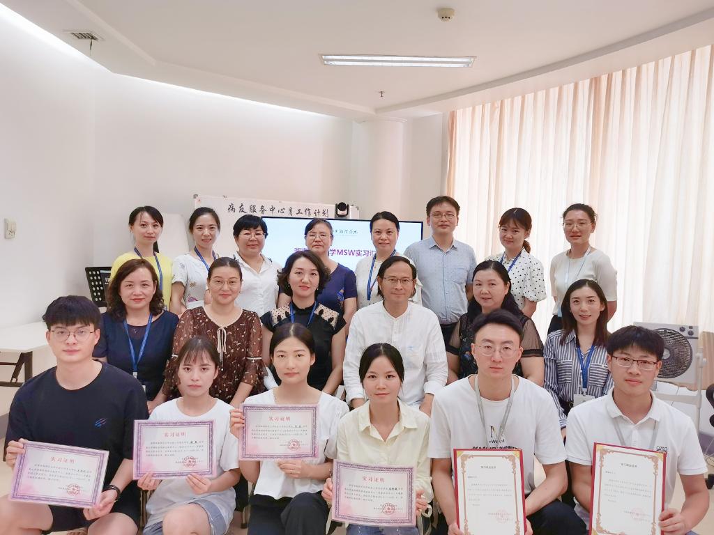 2020年8月31日上午9点30分,由中南大学湘雅医院病友服务中心(以下简称“病友服务中心”)主办,beats365官方网站社会学系、湖南省湘雅医学与健康基金会(以下简称“雅医基金会”)共同参与的“2020年beats365官方网站MSW实习汇报会”在中南大学湘雅医院门诊九楼病友服务中心会议室如期举行。公司党委副书记孙雯波副教授、社会工作学科负责人孙建娥教授、以及史铁尔教授、李桂梅教授、赵玉燕副教授、冯元博士带领2019级社会工作专业六名硕士研究生就在病友服务中心及雅医基金会的实习情况进行实习汇报。