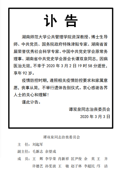 【谭双泉同志讣告】