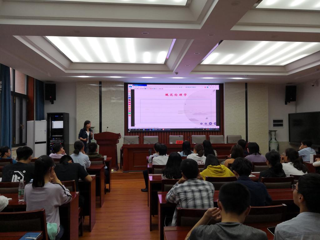 其次,哲学系李波、余露、黄泰柯、张霖源、彭婷、刘永春、张含、肖根牛、王淑庆、刘大为、尹哲等青年教师一一登台发言。李波老师强调哲学是其超越现实的真爱,并讲述了科技哲学在当今科技深刻影响人类社会生活之背景下的重要价值;余露老师以深入浅出、生动活波的方式展示了伦理学的概貌;黄泰柯老师指出哲学是深入人心、关乎切身痛痒的大学问;张霖源老师以其直面现实生活世界的丰富审美体验与深沉美学反思,揭示了美学的丰厚意蕴;彭婷老师分享了她进入哲学领地的心路历程,并简要分析了马克思主义哲学的内核及其重要现实意义;刘永春老师立足中国哲学之精神与特质,充满激情地指出哲学是具有让人自作主宰、自定方向之大用的实践智慧;张含老师强调哲学注重质疑与追问、反思与批判,其关键在于独立精神与自由思想的锻造;肖根牛老师指出西方哲学具有十分深厚的传统,颇为关切根本性问题和基础概念,必须加强理论修养才能洞见其精微;刘大为老师和王淑庆老师各自围绕着逻辑学发表了精到的看法;尹哲老师对宗教学的概况作了介绍,认为学好宗教学需走出书斋,在现实生活中去体认人类社会丰富多彩的宗教现象。各位老师或分享自己研习哲学的经历,或谈论哲学的内蕴及其价值,或讲述哲学二级学科的基本情况,或指点学哲学的方法,让哲学系的新生们备受鼓舞、获益良多。