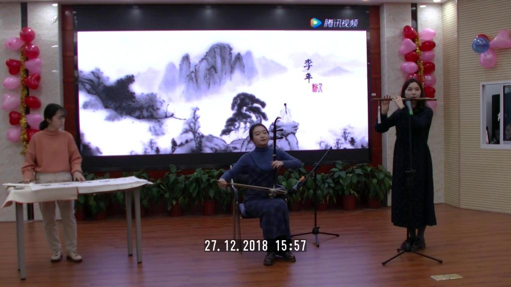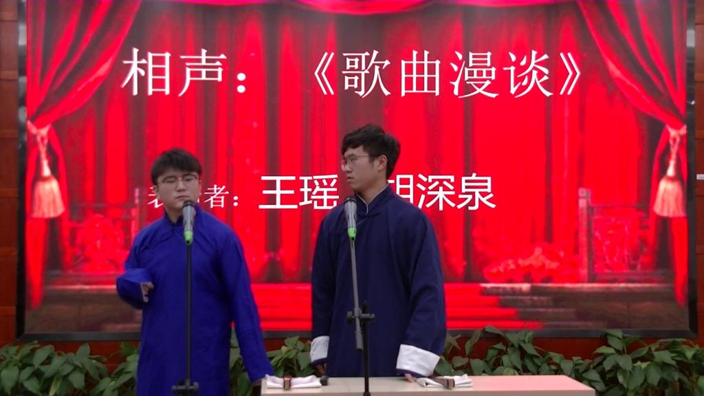 本次文艺汇演不仅有现代表演,还有传统艺术。二胡和笛子合奏的《兰亭序》,配合现场书法为现场观众带来了不一样的视听盛宴,相声《歌曲漫谈》更是博得现场观众开口大笑,现场气氛活跃,掌声不断。