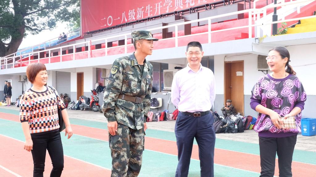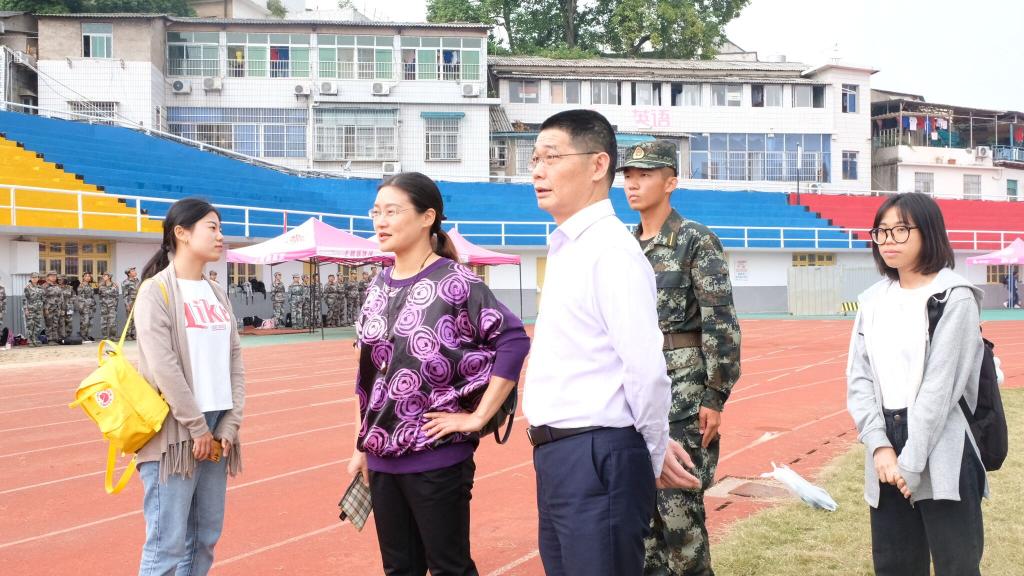 (通讯员黄航宇 黎乐颖)2018级新生军训已经进入尾声,为了给新生鼓劲,公司党委书记余望成,公司党委副书记孙雯波,院学工办主任、18级新生辅导员肖剑,院团委书记龚晔颖于9月27日下午前往田径场慰问新生。