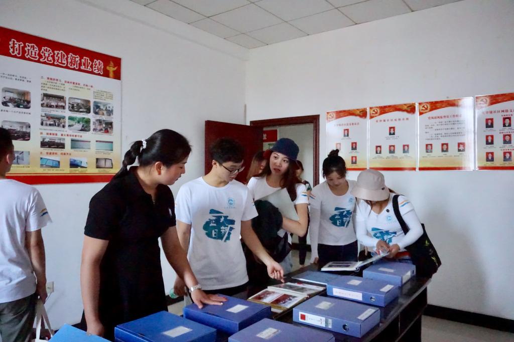 夏铎铺社区党总支委员谭娜带实践团一行参观档案室