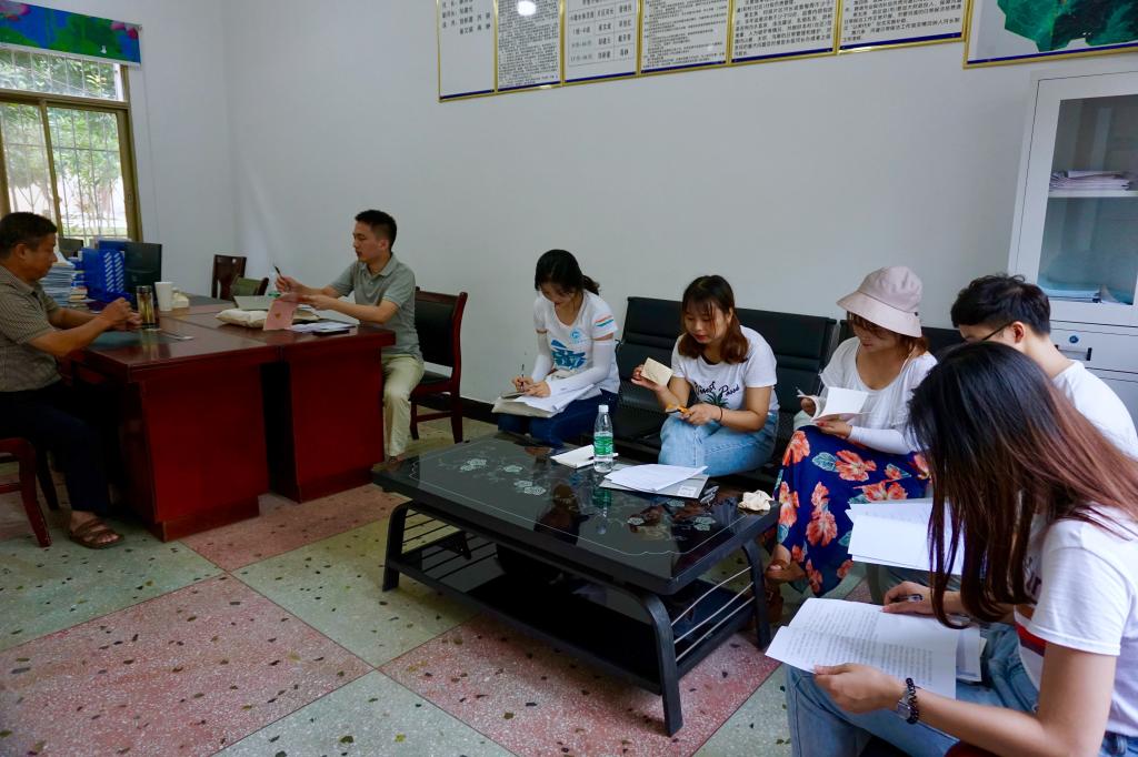 夏铎铺镇党政办邓菁岚与实践团成员座谈交流