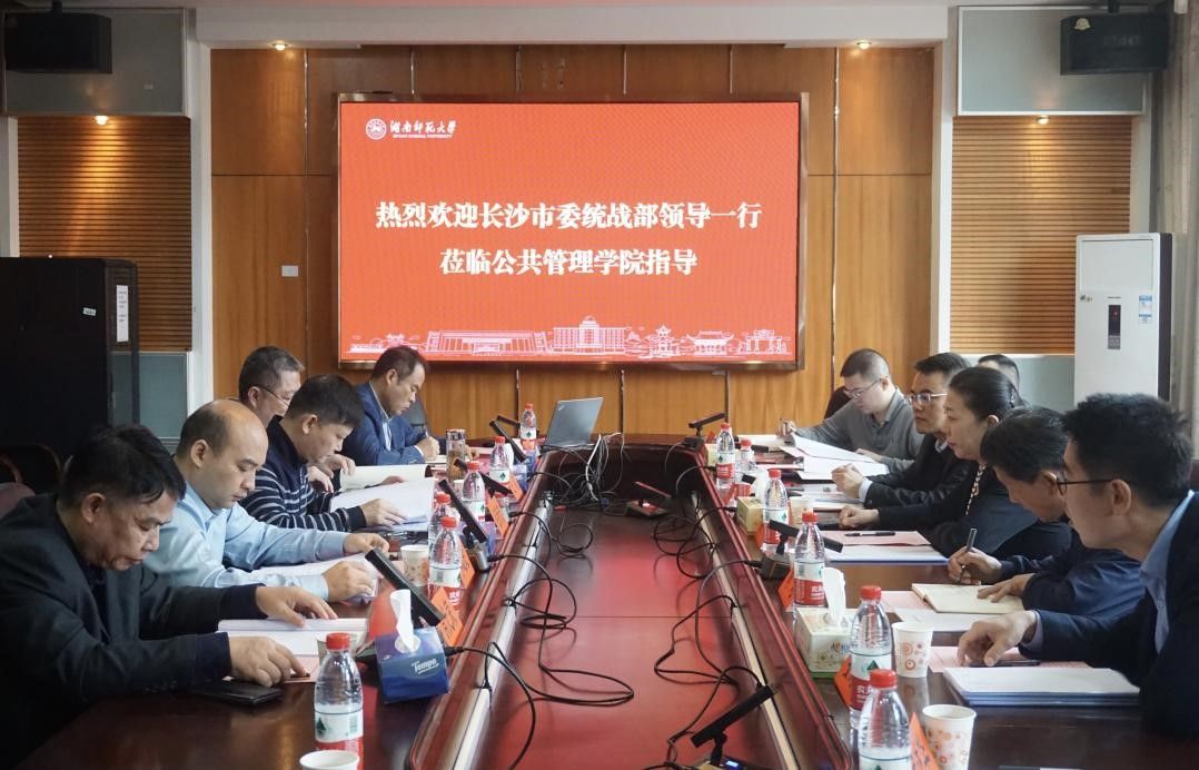 (通讯员 易婧鸿)2023年10月12日上午,长沙市委统战部常务副部长肖玮、副部长彭顺勇、四级调研员陶冶、综合协调处处长徐泽、党派处处长周述华、长沙县高桥镇党委书记姜海纳一行莅临公司调研交流。湖南省社会主义公司许奕锋教授、公司社科处副处长李超民教授、公司经理毛新志教授、副经理王敏教授、马克思主义公司肖光荣教授出席本次调研座谈会。会议由毛新志经理主持。