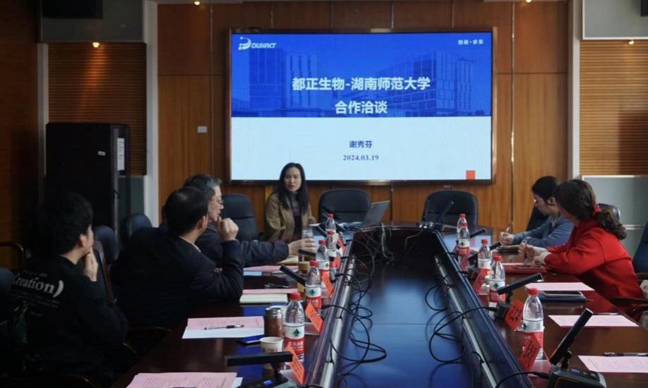 (通讯员王瑞)2024年3月19日上午,长沙市都正生物科技股份有限公司都正研究院总监谢秀芬、都正生物商务发展中心机构拓展部部长刘立华、都正生物科技伦理委员会秘书刘婧莹、长沙市药物评价产业技术创新战略联盟秘书长张孝恩、长沙市药物评价产业技术创新战略联盟学术部负责人肖婷一行来公司洽谈合作。公司科技处科长陶文娜、公司经理毛新志、副经理王敏、道德文化研究院副经理文贤庆、博士研究生胡景谱出席会议。会议在公司415会议室召开,由王敏副经理主持。