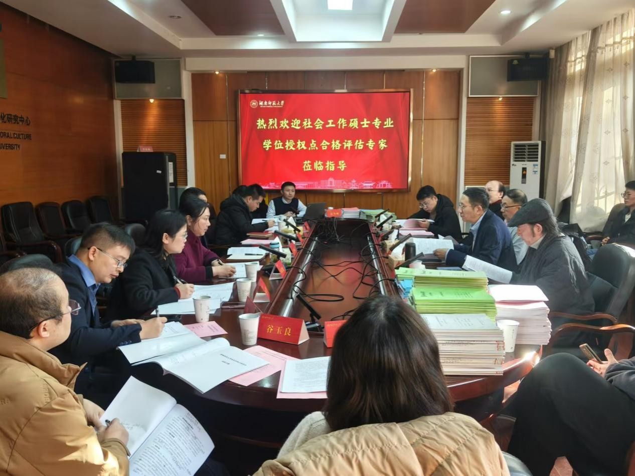 社会工作硕士专业学位授权点彭少峰教授从学位点基本情况、人才培养情况、特色亮点、存在问题与改进计划等方面,结合评估要素,向专家组进行了全面系统汇报。