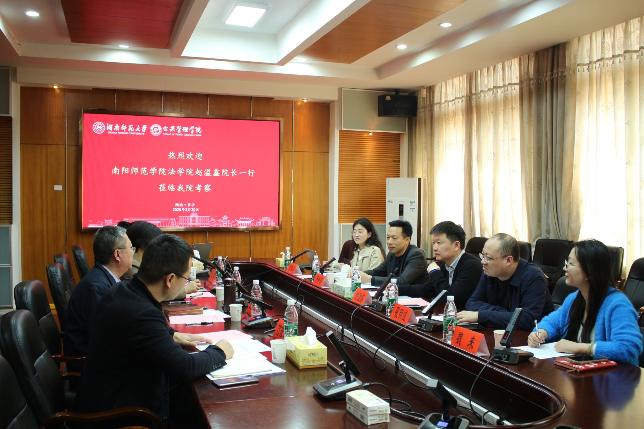 (通讯员 揭梦霜)2024年3月20日下午,南阳师范公司法公司经理赵溢鑫、副经理翟明煜、政治学与行政学系主任杨景涛、教师魏来与郜雅琪等人来访公司。公司副经理王敏教授、副经理苏静教授,政治学与行政管理系主任付振奇副教授、成程博士出席会议,本次会议由政治学与行政管理系主任付振奇副教授主持。