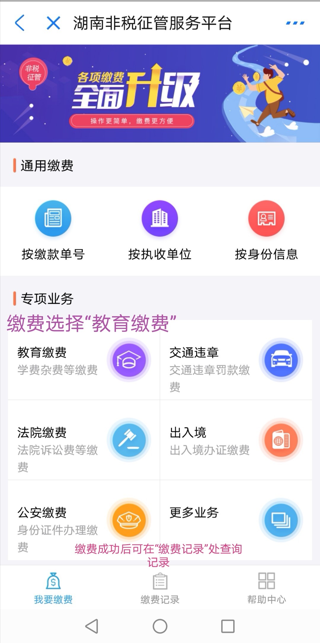 微信缴费方式:1、直接搜索微信公众号“湖南非税”;