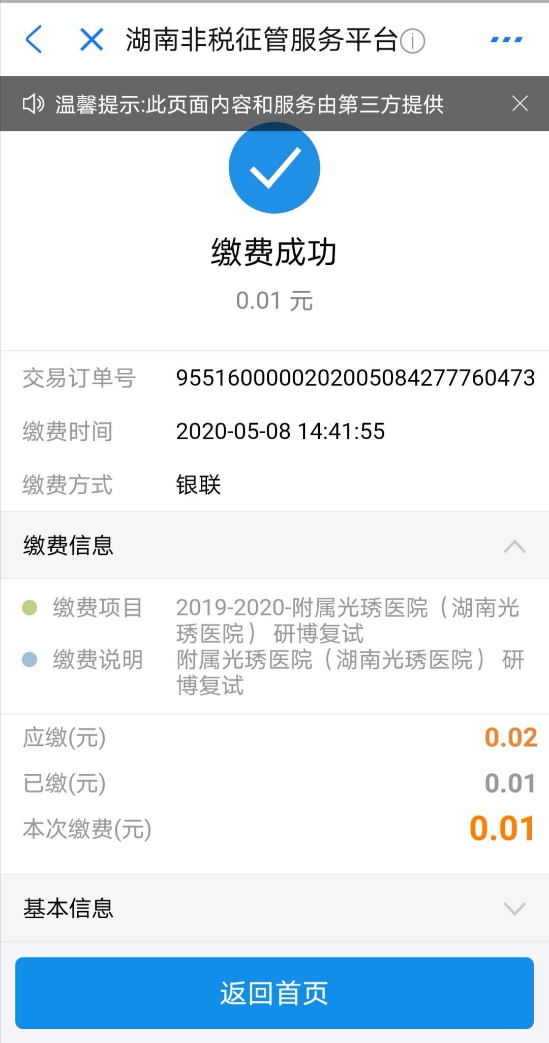 缴费成功后,请同步点开“缴费信息”选项,截屏此页面作为复试缴费凭证。