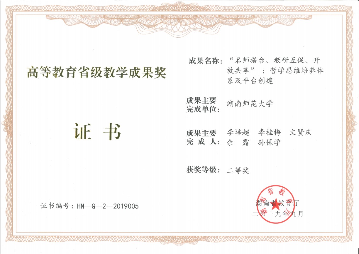 beats365官方网站哲学学科是国家“世界一流”学科群——“语言与文化”学科群三大核心学科之一,是湖南省“国内一流建设学科”。哲学一级学科下设马克思主义哲学、中国哲学、外国哲学、逻辑学、伦理学、美学、宗教学、科学技术哲学8个二级学科方向,设置8个教研室;开设马克思主义哲学(2006)、中国哲学(2006)、外国哲学(2003)、伦理学(1993)、科学技术哲学(2006)5个二级学科博士学位点;拥有哲学一级学科硕士学位授予权,开设马克思主义哲学(2000)、中国哲学(2000)、外国哲学(1998)、伦理学(1985)、美学(2003)、宗教学(2003)、科学技术哲学(2003)7个二级学科硕士学位点;拥有社会主义核心价值观研究中心、生态文明研究院、共享思想研究中心、外国哲学研究所、人工智能道德决策研究所等多个研究机构。