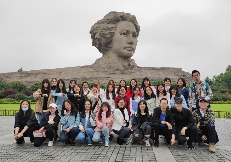 长沙市非物质文化遗产展示馆围绕“家”的主题,秉持一个人、一个家、一座城、非遗即生活的策展理念,将展厅分为家堂、家艺、家味、家节、家人六大部分,收藏各类非遗展品千余件。班级全体成员在讲解员介绍下依次参观了民国时期长沙一户人家四世同堂过年的热闹场景的“家堂”展厅;介绍菊花石雕、浏阳花炮等传统技艺遗产的“家艺”展厅;体验多媒体互动中的长沙花鼓戏、长沙弹词与方言等极具艺术魅力的“家音”;了解玉楼东六大传统湘菜、火宫殿八大传统小吃等令人垂涎的非遗“家味”;在幻影成像展台前身临祭孔、庙会等“家节”妙境;感受长沙非遗“家人”德艺双馨的风采和非遗手工艺品的精妙。在帆船主题展厅里,在讲解员对毛主席游湘江、登岳麓故事的介绍中,本次活动迎来高潮,师生对湖南乘风破浪、披荆斩棘的发展历史有了更深刻的感悟。最后,谭卫华老师启发同学们从整体观、比较观等文化人类学视角对非遗的功能与意义进行思考与讨论。师生于非遗馆前院和毛泽东青年艺术雕塑广场合影留念。