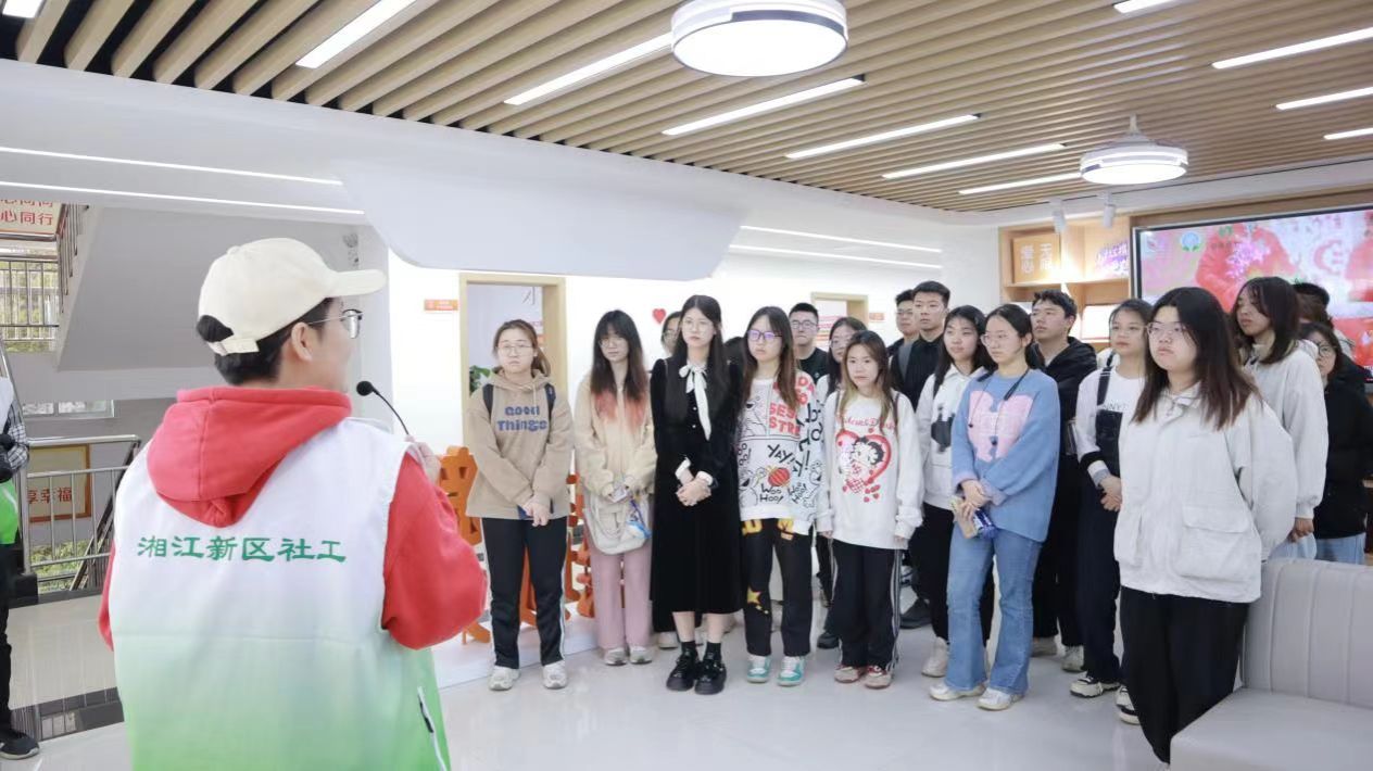 社区公益园负责人刘乐首先向大家介绍了园区的基本情况。随后,刘乐带领全体成员参观办公区域,并向同学们讲解相关部门职能。刘乐指出,从“五社联动”到统筹各工会参与,公益园与湘江新区各重要工会联合,一起服务人民。