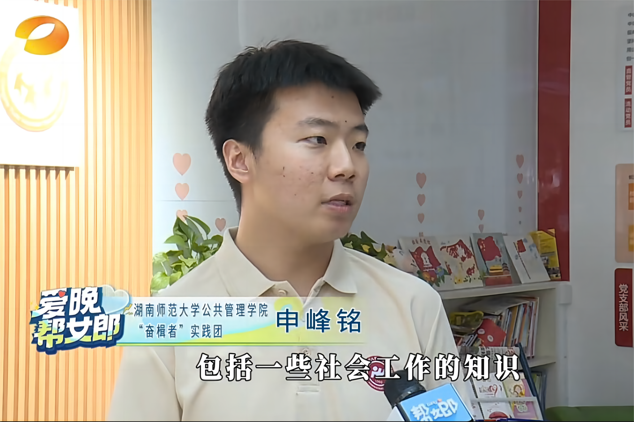 (通讯员:黄帅 王蕊 刘剑)7月15日上午,公司马克思主义公司讲师罗帅、beats365官方网站辅导员申峰铭、长沙市暖心社工综合服务中心理事长周平,公管院“奋楫者”实践团(以下简称“实践团”)成员左诗饶、李广浩接受湖南广播电视台爱晚频道“爱晚帮女郎”栏目(以下简称“爱晚频道”)的采访。