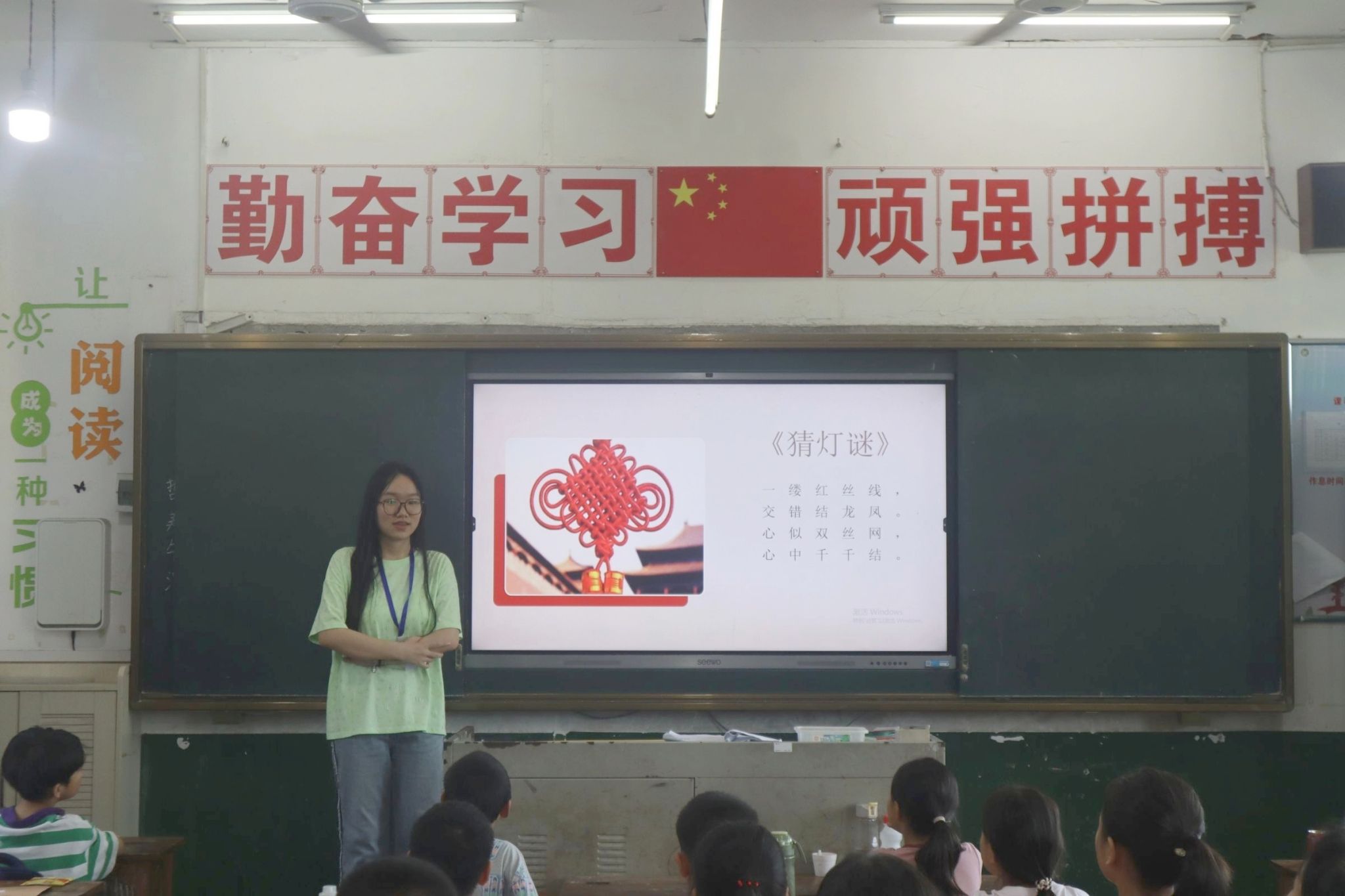 下午,实践团成员傅昀茜在手工课上带领孩子们学习中国结。她从中国结的起源、种类、特点和学编四个方面讲述中国结的相关知识,以此激发孩子们的学习兴趣,并利用手工编绳引导他们做出属于自己的中国结。万字结、如意结等各类中国结深受孩子们的喜爱。