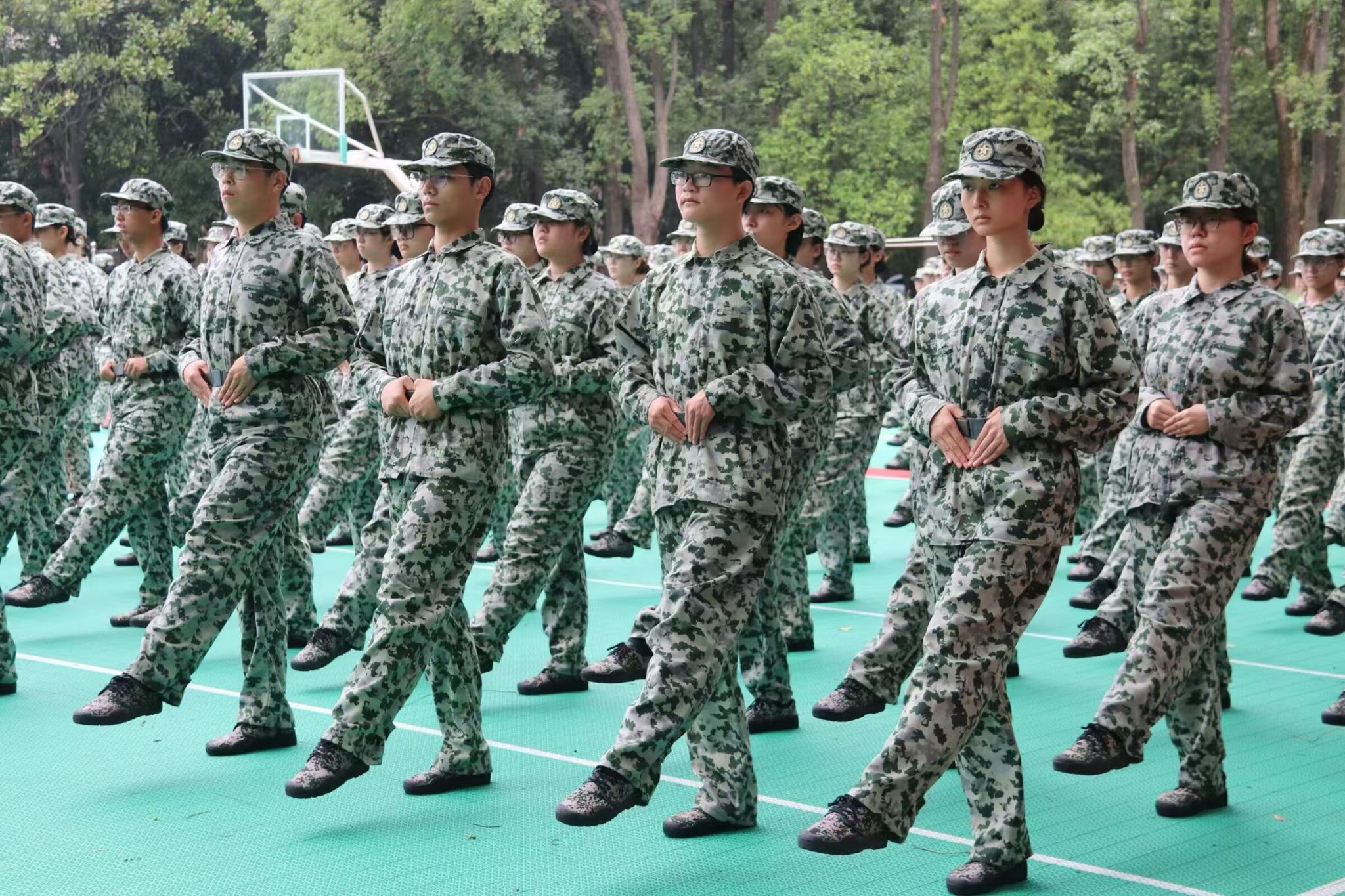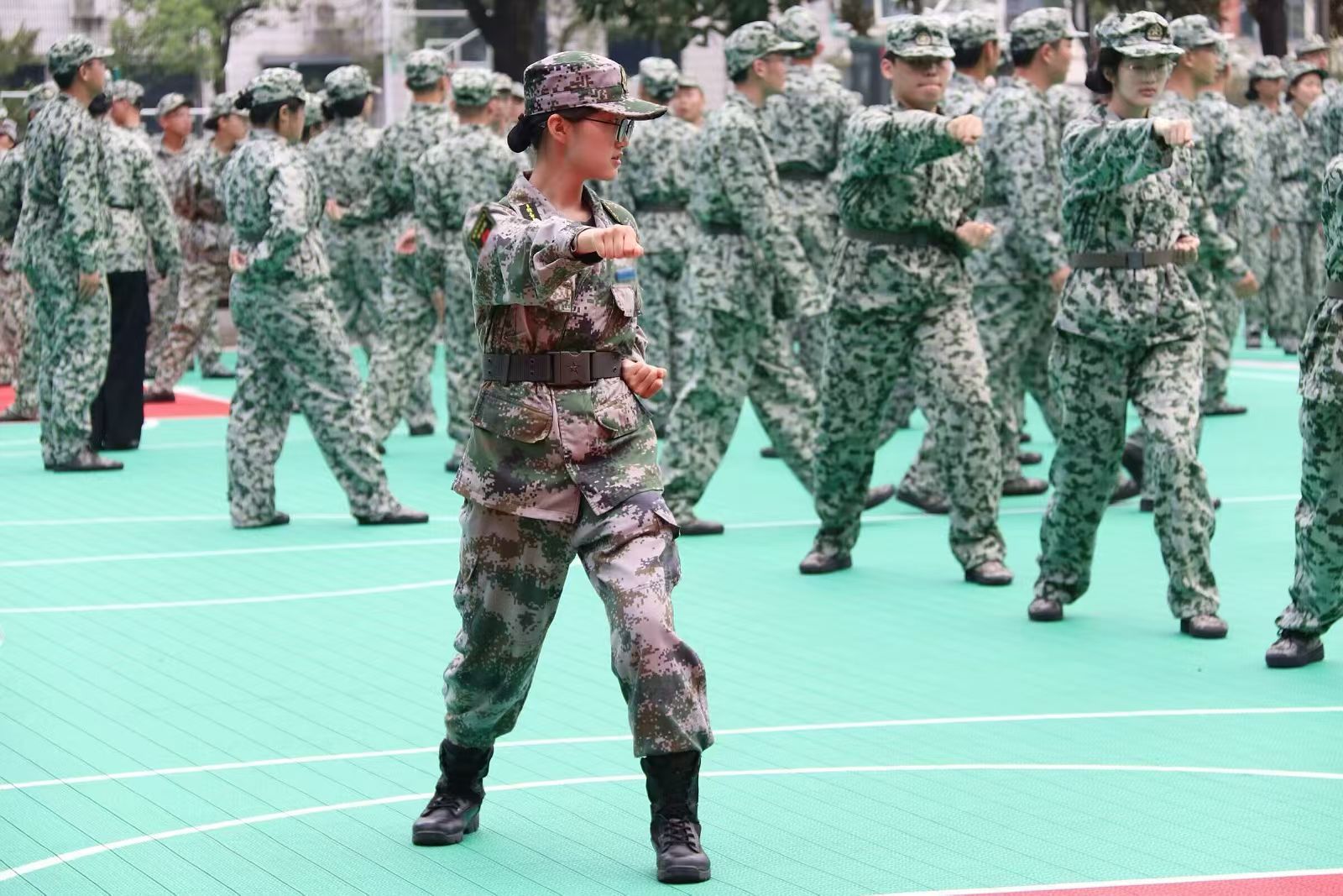 第一方阵主要承担走正步的训练任务,他们步履坚定,整齐划一,每一步都彰显出他们的刚毅与果敢,同时也展现出公管院新生坚韧不拔的毅力与团队精神;第二方阵主要进行军体拳和匕首操的训练,在教官的示范和教导下,他们动作迅猛,刚劲有力,不仅展现了青春的蓬勃朝气,也体现了同学们勇于挑战自我、追求卓越的精神风貌。