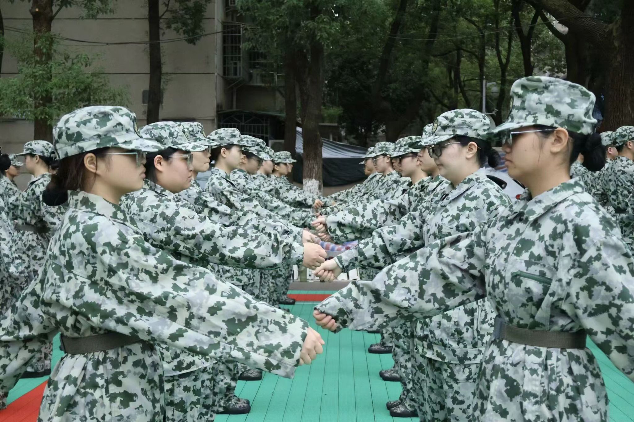 两个方阵虽然训练内容不同,但他们在这一过程中以饱满的热情和坚定的信念投入到军训训练之中。他们不仅锻炼了身体、磨练了意志,更培养了团队协作意识和集体荣誉感。