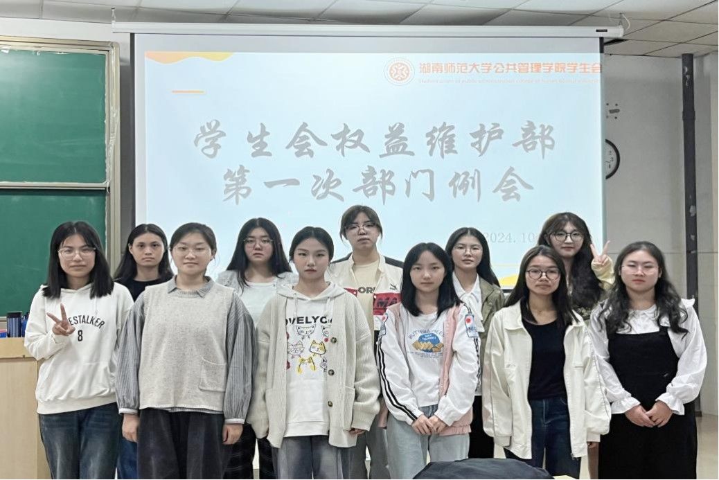 (通讯员:邱乐涵 李荣 )10月19日下午,公管院员工会权益维护部第一次部门例会在景德楼南栋204教室举行。主席团成员刘天姿,权益维护部部门负责人李亚璇,志愿者负责人李荣、谭景月以及八名志愿者参加此次会议。李亚璇宣布第一次部门例会正式开始,并代表权益维护部对24级新生志愿者表示欢迎。接着,志愿者们依次做自我介绍,表达了共同进步的美好愿景。李亚璇强调了工作交流中的礼貌问题,她要求志愿者们熟练掌握各类办公软件,并讲解了即将开展的第十八届“自强之星”活动注意事项。随后,谭景月就卫生保障工作进行了介绍,明确了工作中需要注意的细节问题。李荣介绍了权益工作安排,要求志愿者们认真做好同学们权益问题的收集工作,切实维护好同学权益。最后。刘天姿强调了要践行全心全意为同学服务的宗旨,要求志愿者们配合部门工作,积极参加各类活动,向党团组织靠拢。此次会议有效地加强了负责人与志愿者之间的协作与交流,增进了权益维护部的凝聚力,为后续开展工作做好了准备。