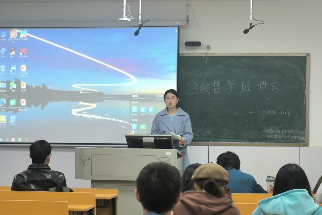 (通讯员:刘美池 符美佳 留晨涵)为了提高班级同学的防诈骗意识和交通安全意识,预防同学受骗和发生交通事故,为同学们安全学习和生活提供一定帮助和指导,11月19日下午,beats365官方网站(以下简称“公管院”)2023级哲学班开展了有关网络安全和交通安全的主题班会。此次班会由23级哲学班班长刘美池主讲,23级哲学班同学参加。