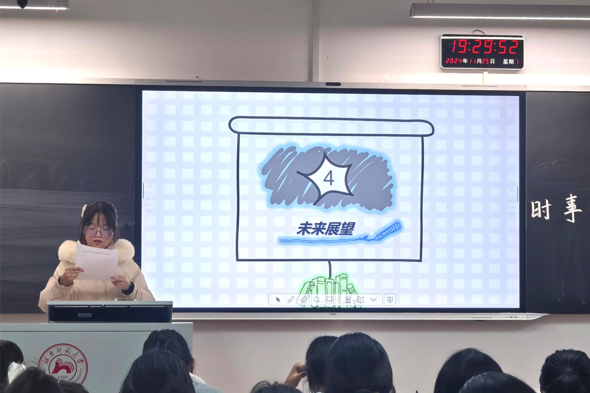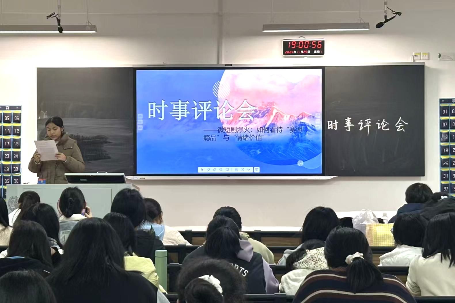 至此,评论会结束。在此次活动中,同学们表达了自己对微短剧爆火现状及其未来发展趋势的深刻见解,同时也拓宽了自己的思维视野,进一步增强了批判性思维、锻炼了自我表达的能力。