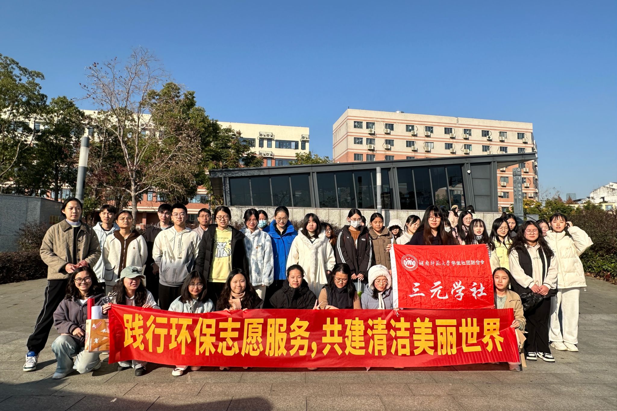 (通讯员 谢琪 孙艺文 留晨涵)为了更好地传播环保理念、增强会员们的环保意识,12月15日下午,三元学社在长沙市岳麓区后湖公园开展“践行环保志愿服务,共建清洁美丽世界”团日活动。三元学社理事长彭馨逸,副理事长张莹、孙艺文、谢琪及社团会员参加此次活动。