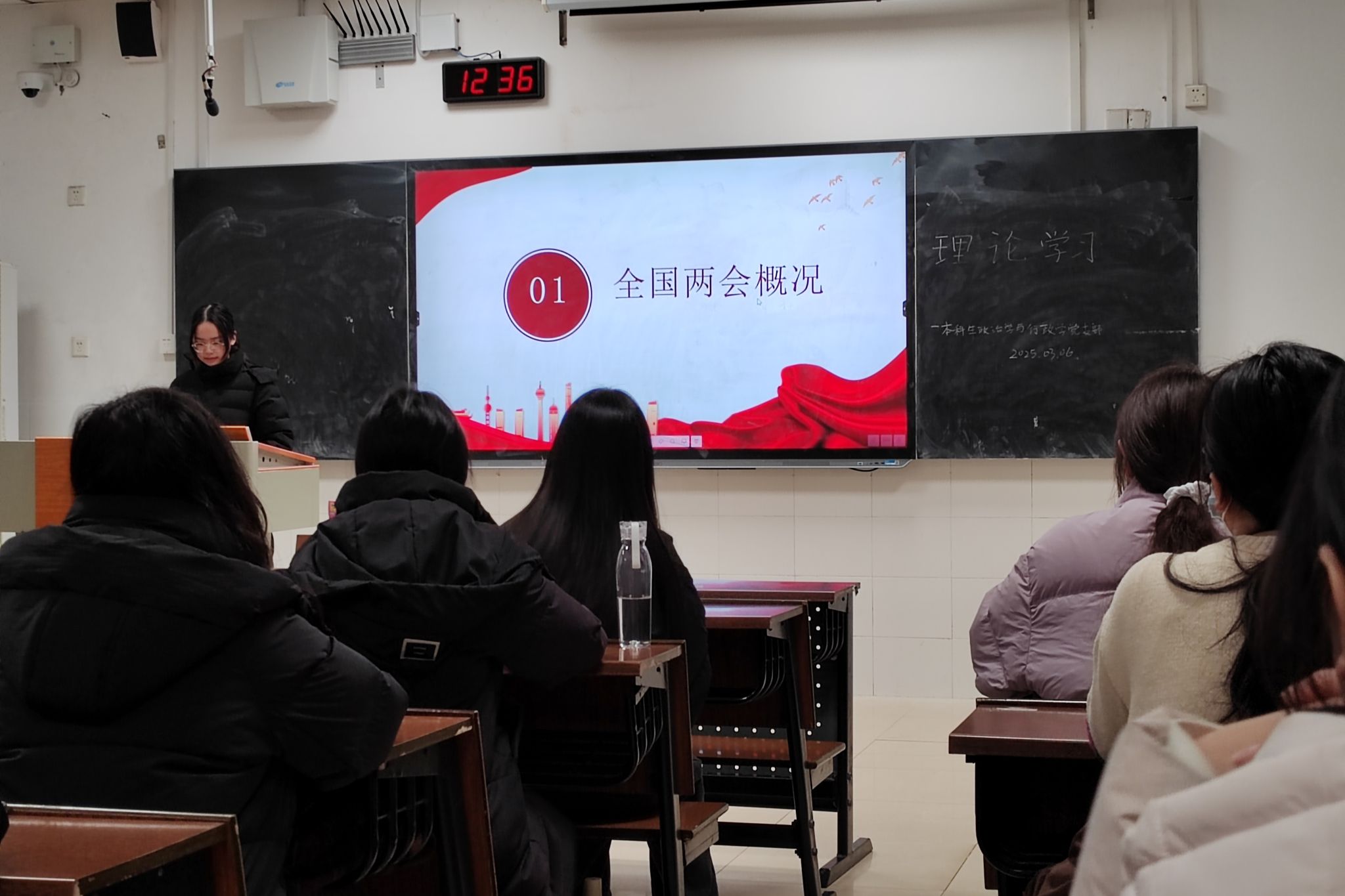 主讲人杨灵灿将此次理论学习活动分为三大板块。一是对全国两会的概述。杨灵灿采用图文结合的方式呈现两会知识及基本内涵,系统地阐述了两会召开情况及会议中的提案等内容。二是针对2025年全国两会的核心精神的阐释。此次两会聚焦高质量发展、民生保障、科技创新、深化改革和绿色发展等关键领域,更推动了“十四五”收官与“十五五”规划衔接期的战略布局构建。三是关于全国两会学习的重要意义和收获体会的分享。杨灵灿从国家宏观层面与个人微观层面双层次的融合视角切入,号召党支部成员关注时政热点、掌握两会动态,敢于为祖国的发展建言献策。