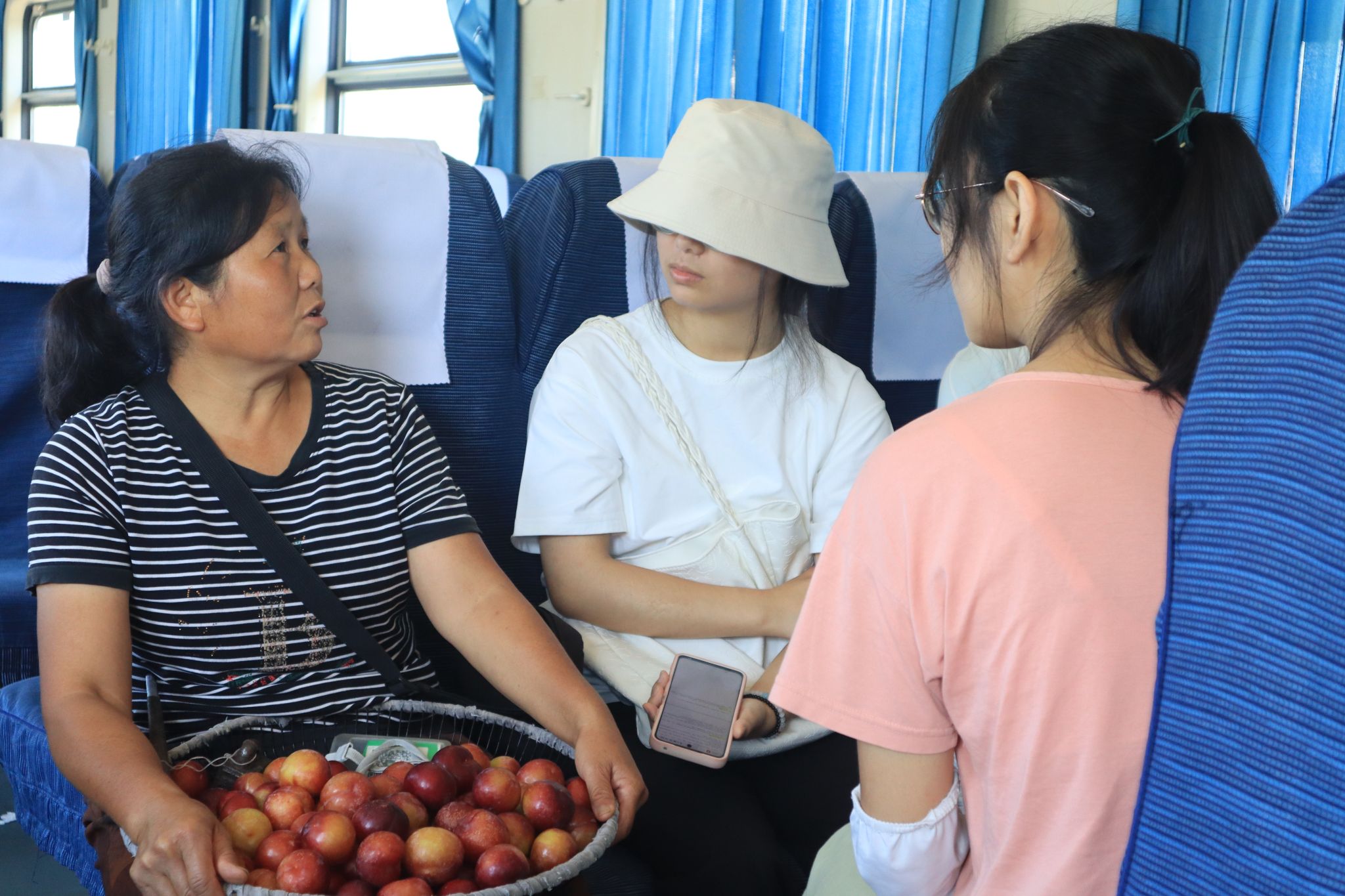 实践团成员与当地村民进行交流,化身“观察者”与“参与者”,感受到助农之路的不易与艰辛。成员们表示,在7272次列车上看到的,是国家助农政策落地生根所带来的民生幸福、经济发展,更是基层工作者的坚守与奉献。