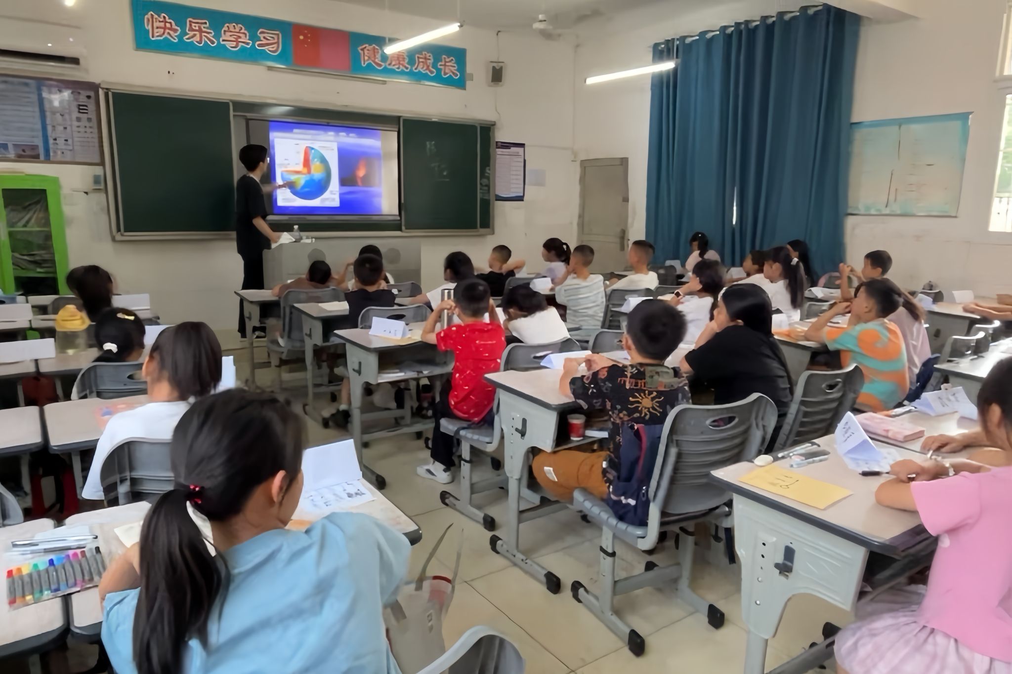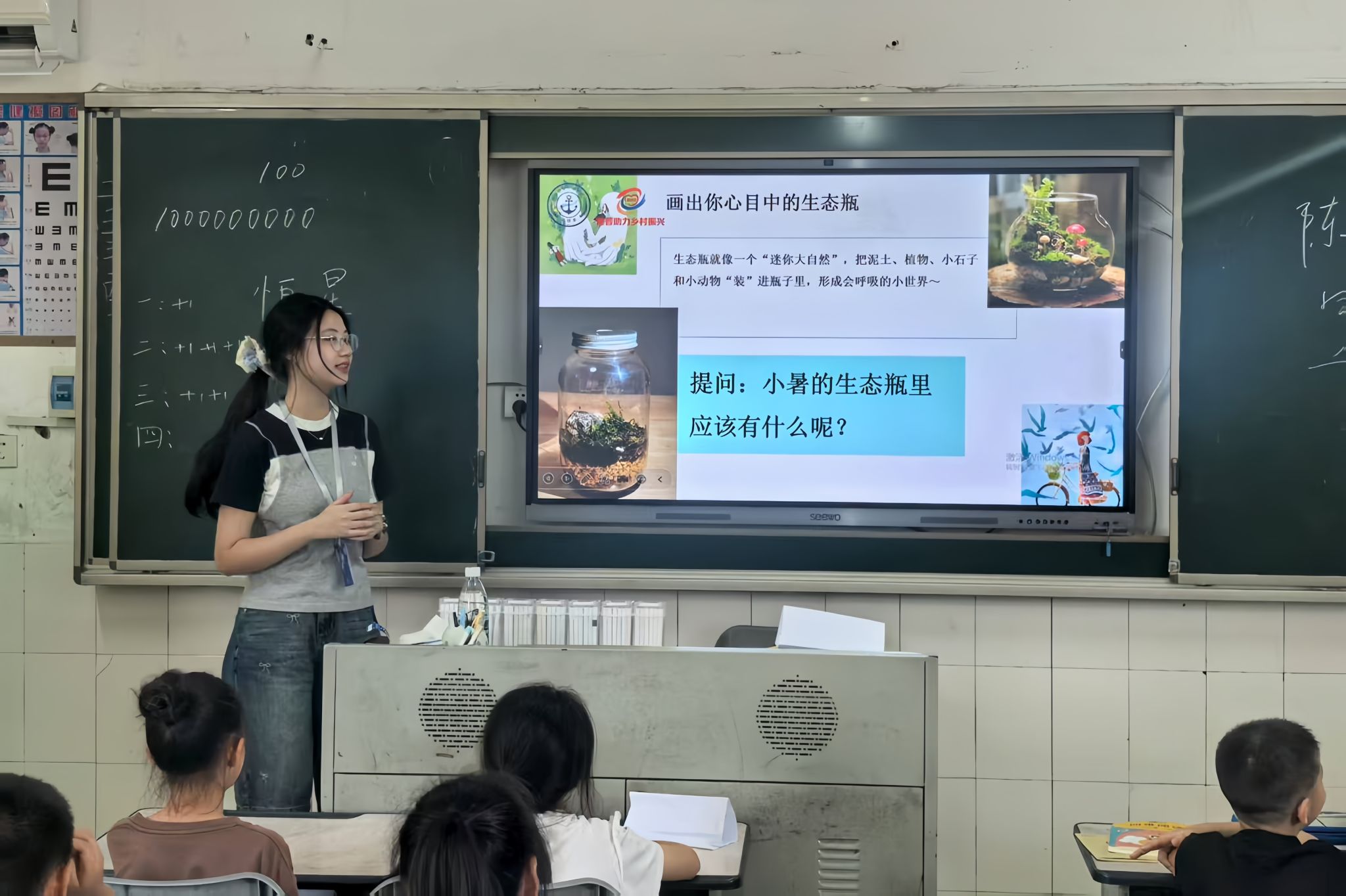 在教学活动中,节气美育课上,实践团成员通过生动的图文展示与互动问答,讲授了二十四节气背后蕴含的传统文化、自然规律。孩子们亲手绘制“小暑”生态瓶,在色彩与线条间感受节气美学的魅力;成语课堂里,成员将成语典故改编成趣味故事,组织孩子们开展成语接龙、看图猜成语等游戏活动,让孩子们在理解成语内涵的同时,领略中华语言文字的精妙。此外,宇宙知识科普课上,成员为孩子们讲解了天体星系的相关知识,帮助孩子们形成对宇宙的基本认知。