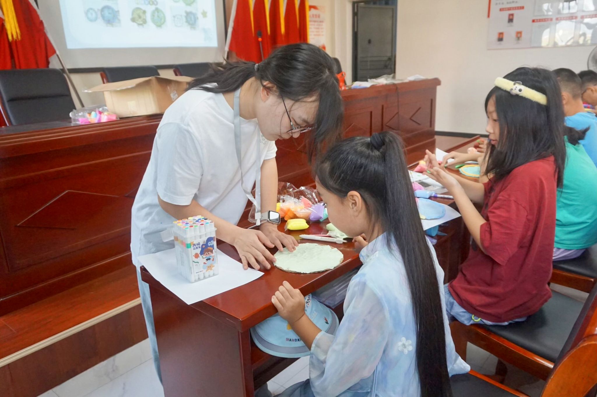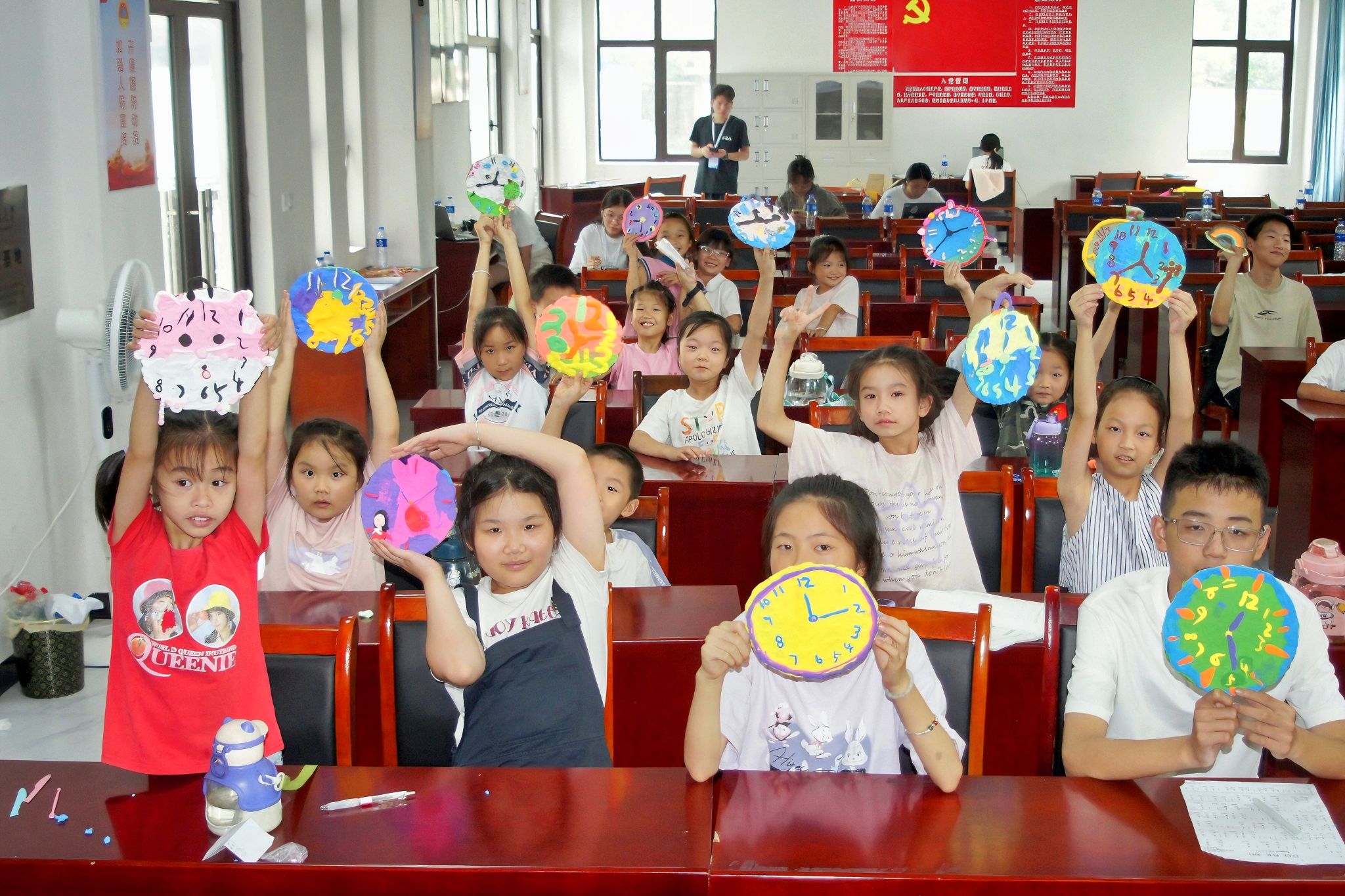 趣味手工课堂则以“我的时间,自己支配”为主题,培养员工们的时间管理意识。课堂上,实践团成员董雨娇通过“早睡早起”、“按时吃饭”等生活场景引入主题,带领员工们用粘土、卡纸等材料制作各式各样的时钟。在手工实践过程中,员工们把抽象的时间概念转化为形象的艺术作品,展现对时间管理的独特理解,体悟规律生活的价值理念。