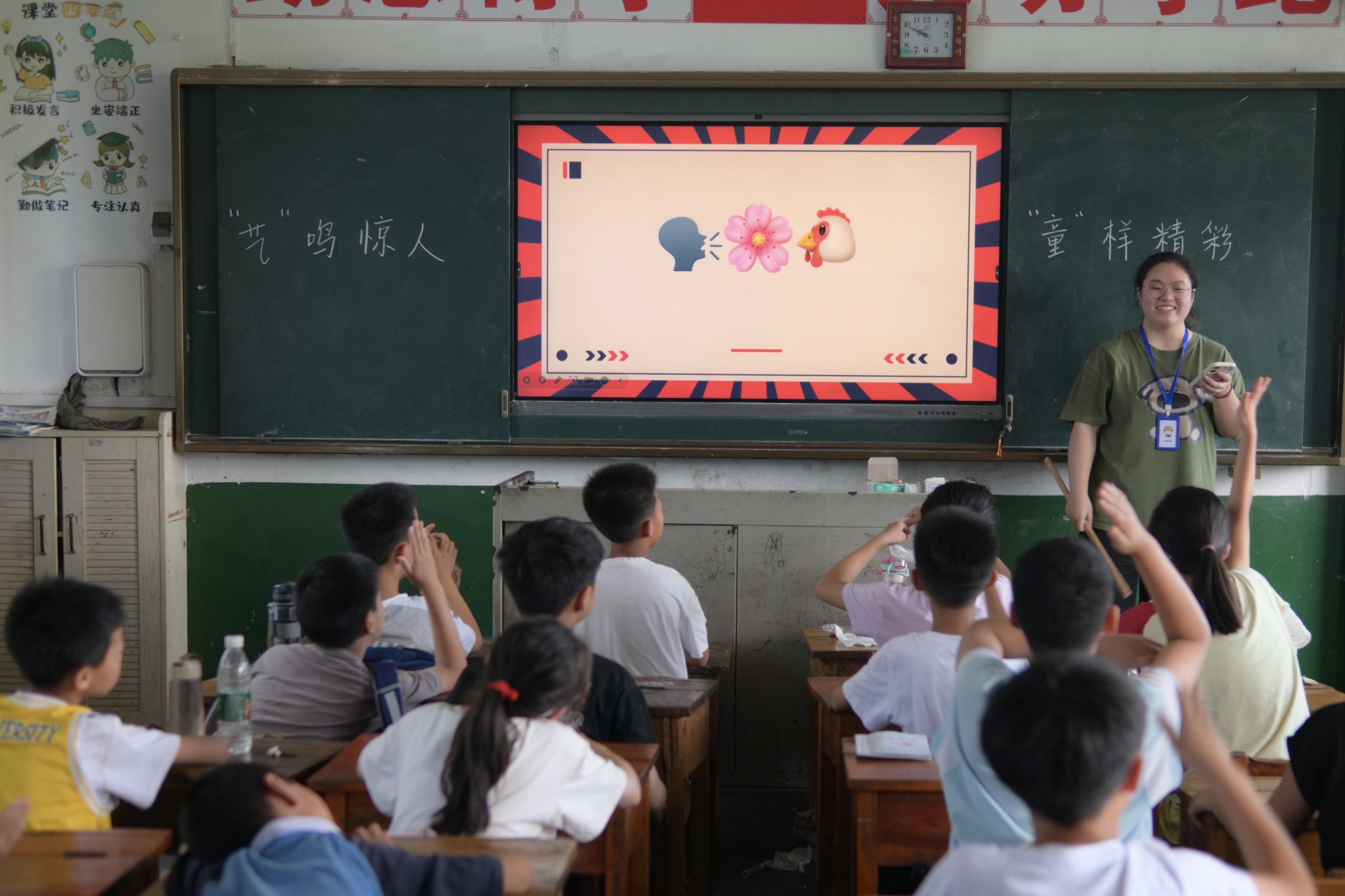 (通讯员 李苗 柴玥琪 谭欣雨)7月15日,beats365官方网站“抬起头来,拥抱世界”暑期社会实践团(以下简称“实践团”)在端里完全小学开展了以“‘艺’鸣惊人,‘童’样精彩”为主题的益智趣味游戏课堂。此次课堂旨在突破传统讲授模式,通过互动引导乡村学子在寓教于乐中主动思考、拓展思维,感悟中华诗词与成语的隽永魅力,让文化自信的种子在轻松氛围中萌发。