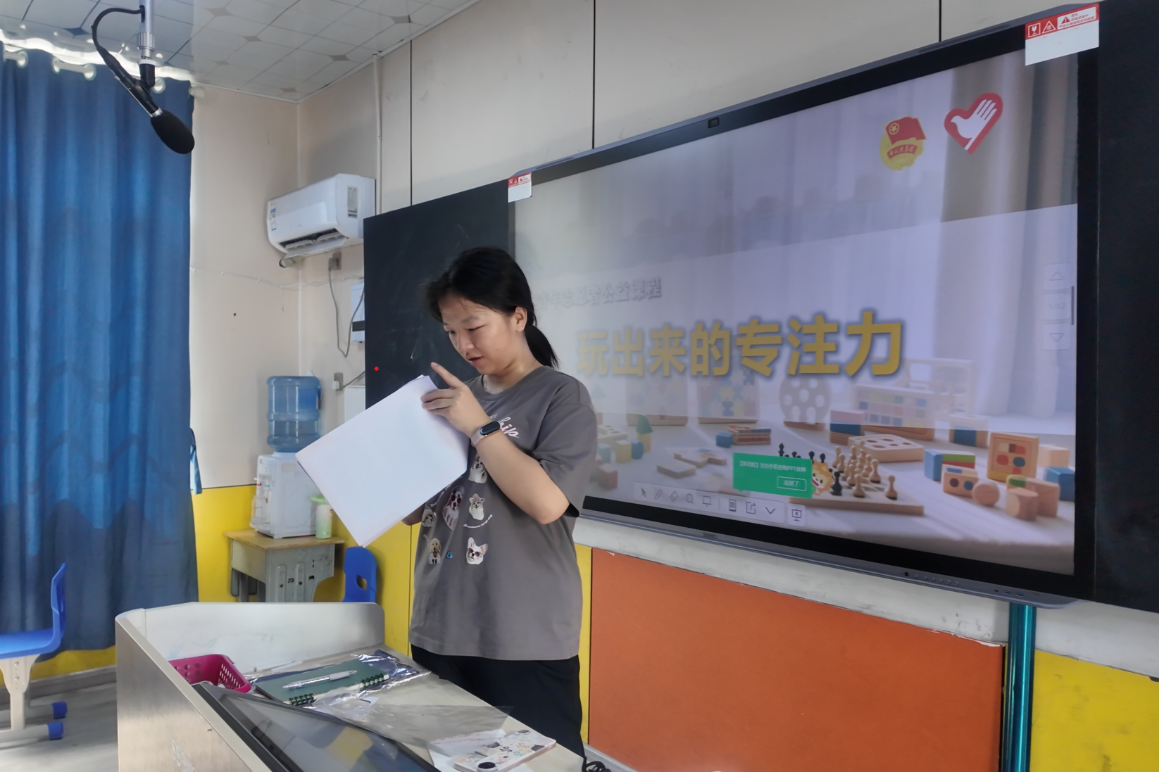 实践团成员为小朋友们专门设计了“玩出来的专注力”课堂,通过精心设计的游戏训练,利用“舒尔特方格”,要求小朋友们快速按序查找数字,有效锻炼了他们的视觉广度、搜索速度及注意力的集中。