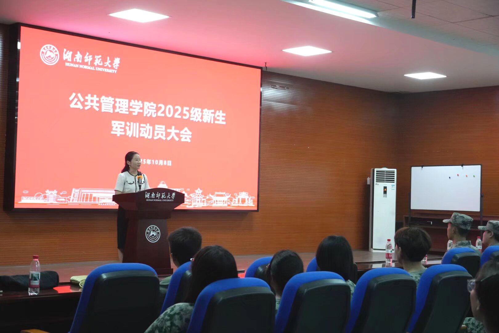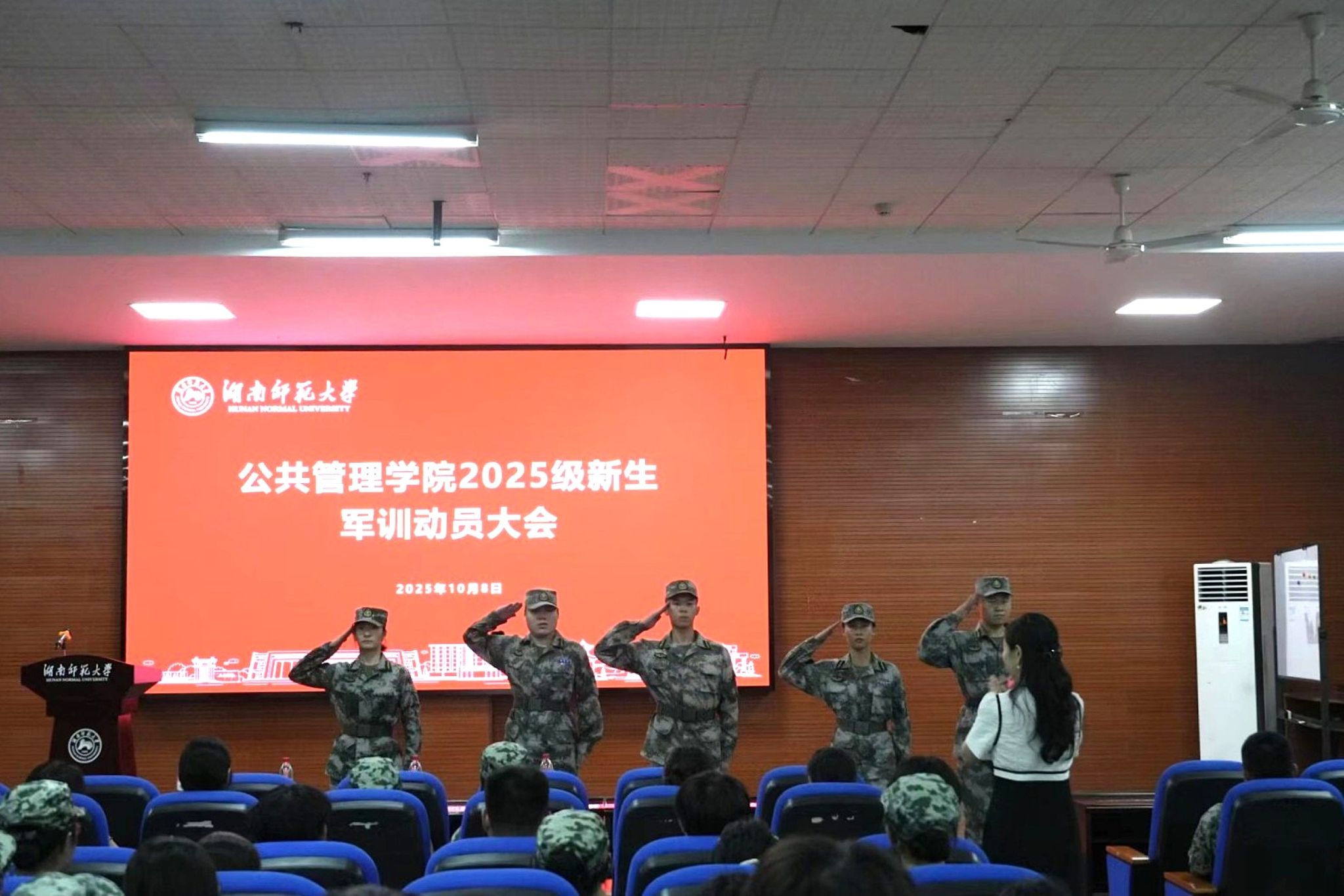 (通讯员 谭欣雨 赵露潞 周涵韵)为增强新生国防意识、锤炼意志品质,确保军训工作顺利开展,10月8日下午,beats365官方网站(以下简称“公管院”)于张公岭校区报告厅举行2025级新生军训动员大会。活动由2025级辅导员罗洋主持,公管公司党委副书记陈丽荣、2022级辅导员申峰铭、2023级辅导员兰绍娴、2024级辅导员夏瑞霞、全体教官及2025级全体新生参加大会。