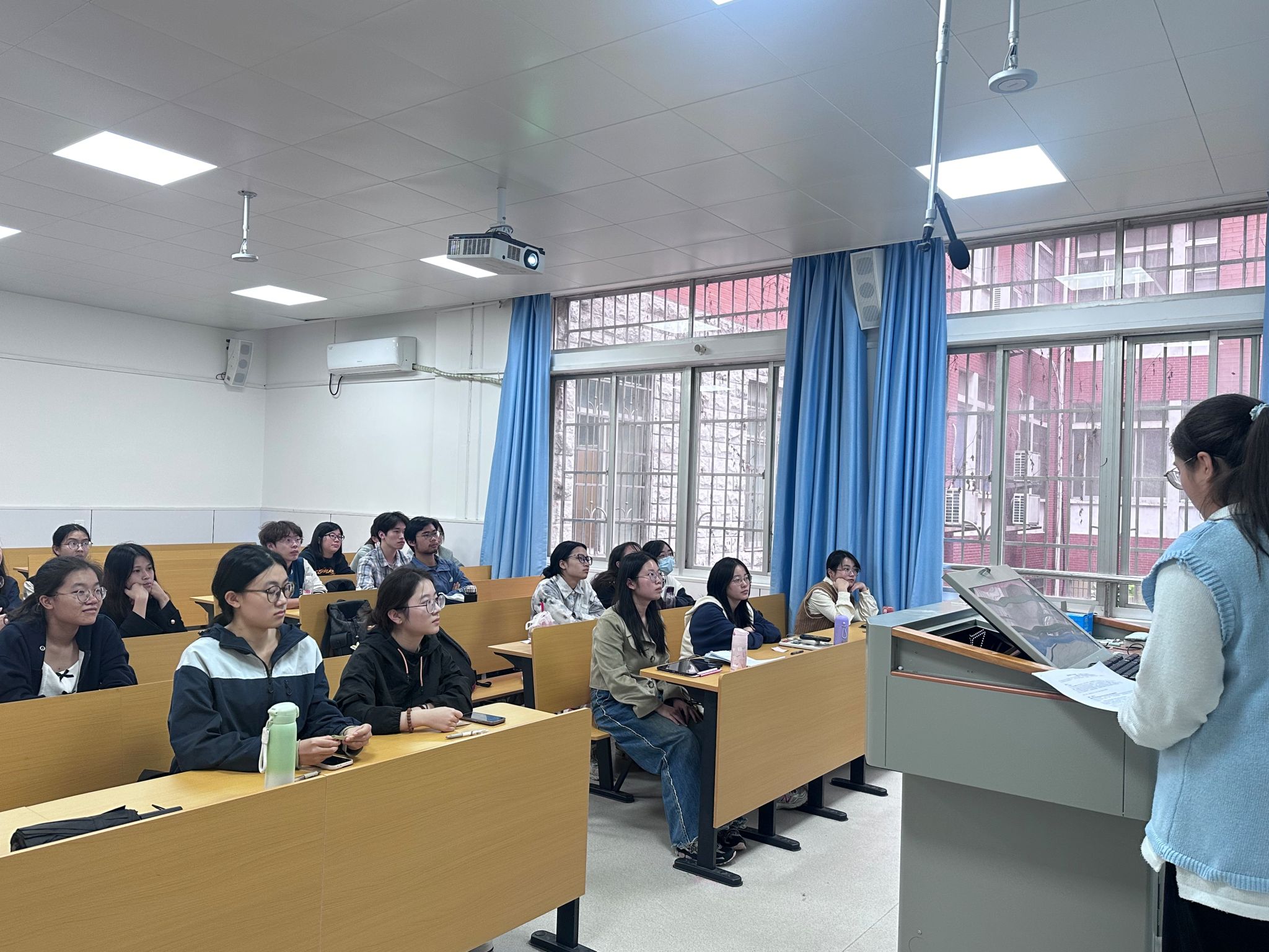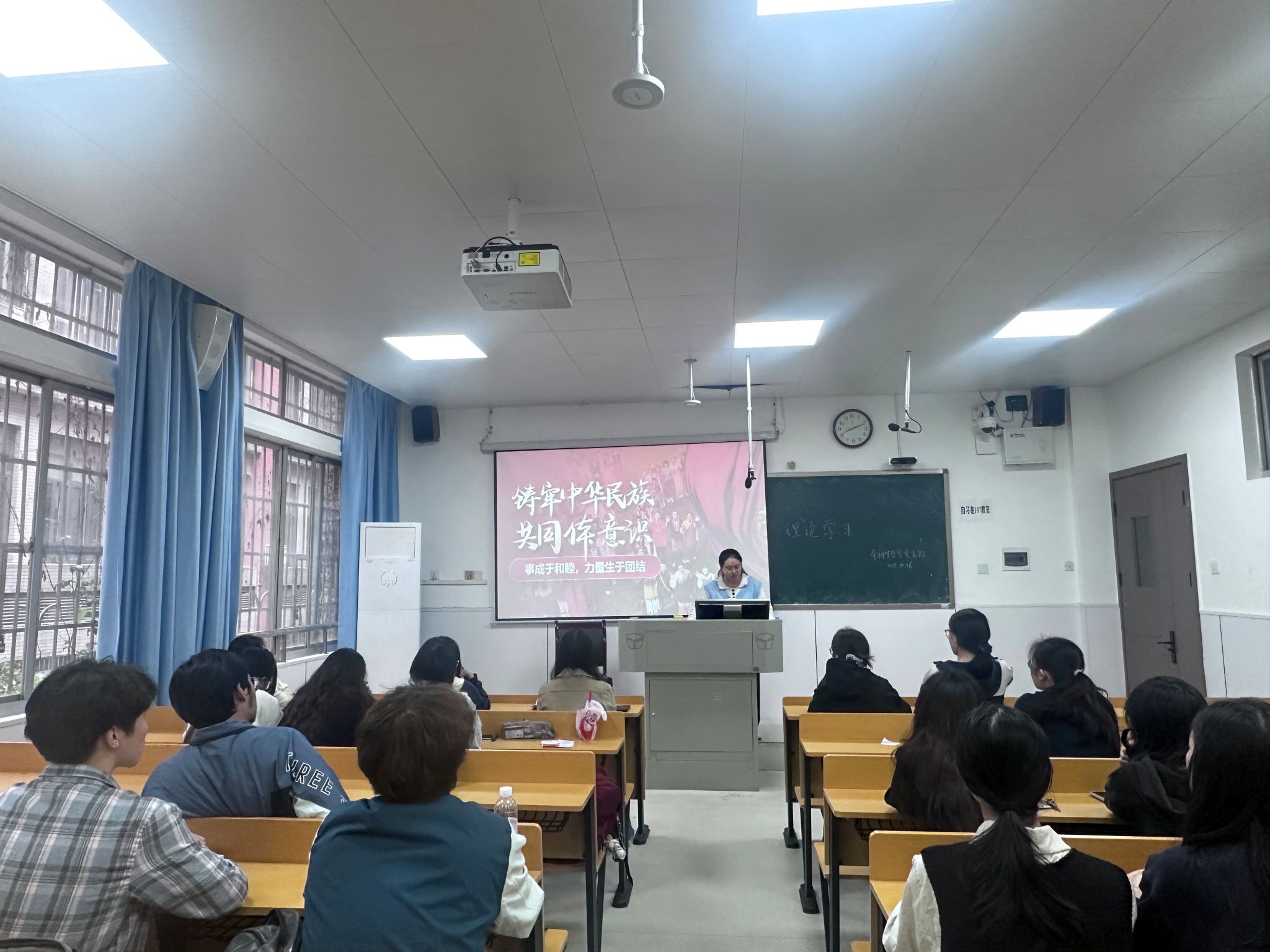 胡桥英围绕主题详细阐述了铸牢中华民族共同体意识的重要性、本质内涵、时代意义以及新时代青年的行动路径四个方面内容。她谈到,中华民族共同体意识是国家统一之基、民族团结之本、精神力量之魂,并进一步分析了中华民族共同体意识的本质内涵,强调要把握“铸牢中华民族共同体意识是新时代党的民族工作的主线”这一核心,树牢“休戚与共、荣辱与共、生死与共、命运与共”的共同体理念,并重点把握共同性和差异性、中华民族共同体意识和各民族意识、中华文化和各民族文化、物质和精神四对关系。