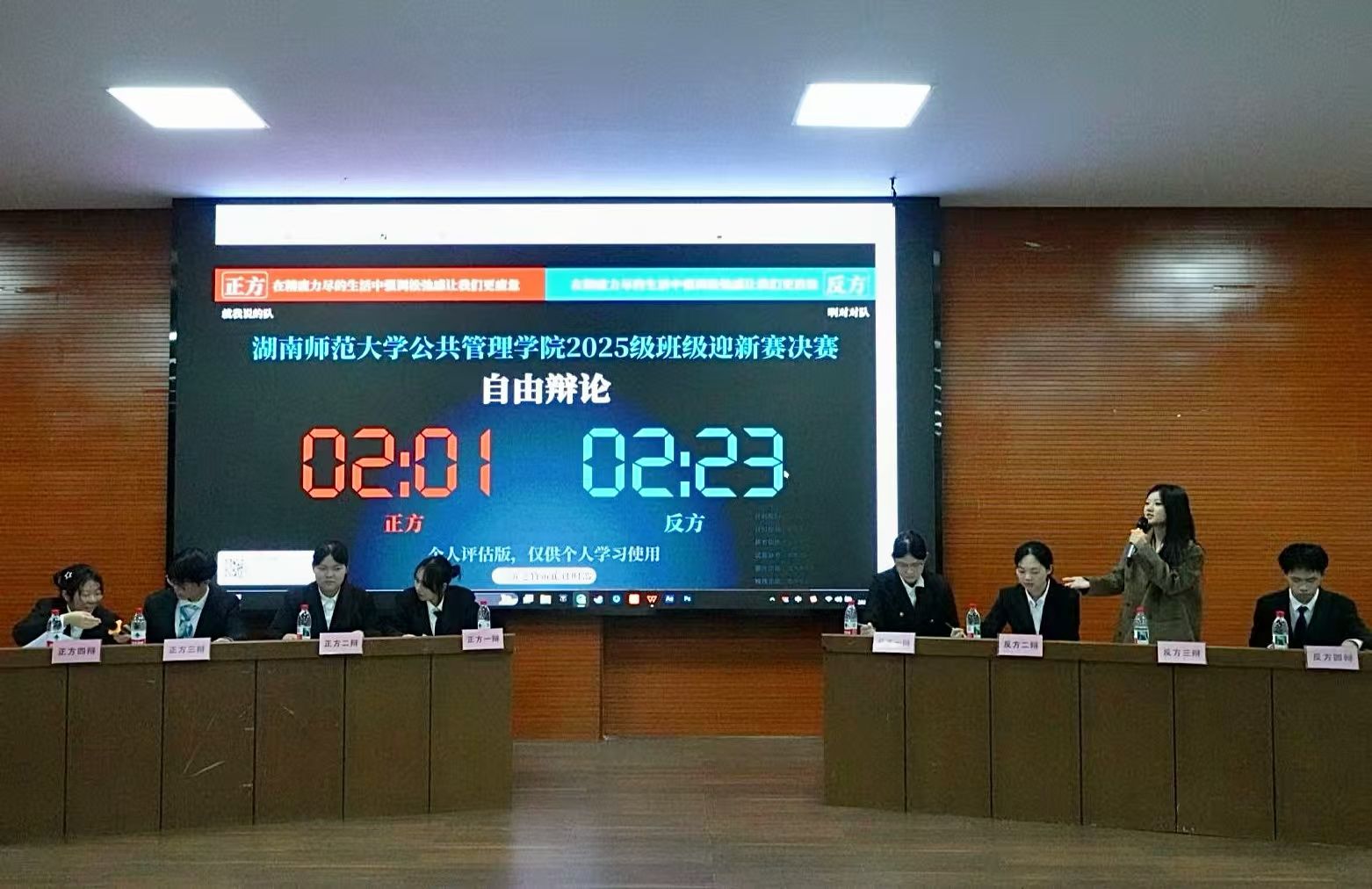 (通讯员 王一诺 王涵钰 谭欣雨)为搭建新生交流平台,培养逻辑思辨与团队协作能力,11月2日,beats365官方网站(以下简称“公管院”)“迎新杯”班级辩论赛决赛暨辩论队聘书授予仪式在张公岭校区图书馆报告厅举行。2025级行政管理班导师程中培、哲学班导师王淑庆、2023级公管院辩论队副队长王淑贞、副队长万梓妍受邀观看此次比赛,2023级校辩论队队长林天悦、2023级公管院辩论队队长冯丹、副队长王蕊担任评委。