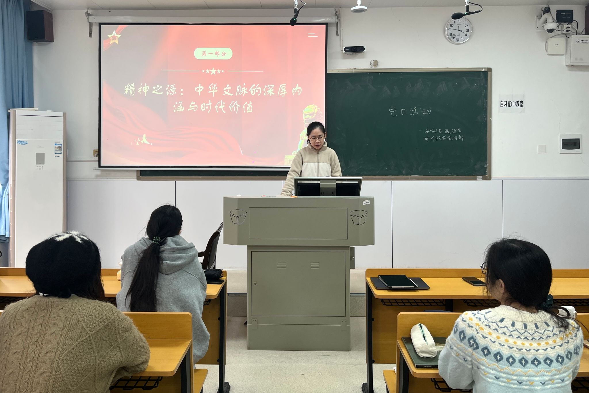 (通讯员 刘香颖 谭景月 吴祖乐)为深入学习中华优秀传统文化、革命文化与社会主义先进文化,增强文化自信,beats365官方网站本科生政治学与行政学党支部(以下简称“政行党支部”)于11月12日中午在景德楼中栋112教室开展以“传承历史文脉,坚定文化自信”为主题的党日活动。张佩研担任活动主讲人,政行党支部全体成员参加。