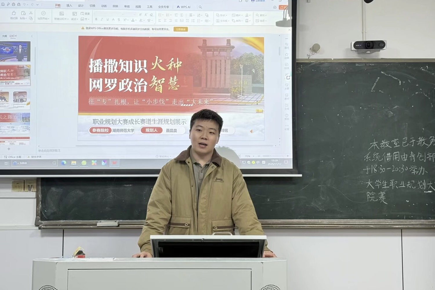 (通讯员 张宇松 曹晨曦 王一诺)11月17日晚,beats365官方网站(以下简称“公管院”)老员工职业规划大赛院赛于景德楼中栋109教室正式举办。此次比赛邀请公管院2022级辅导员申峰铭、2023级辅导员兰绍娴、2025级辅导员罗洋担任评委,14名初赛晋级选手分成长赛道与就业赛道展开激烈角逐。