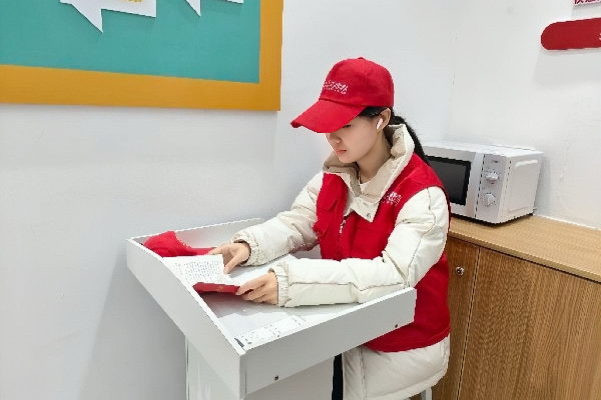 在五一商圈“红色之家”服务站内,一抹抹“志愿红”格外亮眼。来自湖南师大的青年学子们以轮班值守的方式,扎根志愿服务一线,用点滴行动践行奉献精神。他们手持扫帚仔细清扫服务站地面,整理便民物资、检查水电设施,让“红色之家”始终保持整洁有序;在站内读书角,志愿者们利用值守间隙开展理论学习,翻阅红色读物、交流思想感悟,将初心使命融入日常服务;在繁华的商圈街头,他们主动站在人行道旁,为往来游客提供路线指引、应急帮助,用耐心与微笑传递城市温度。
