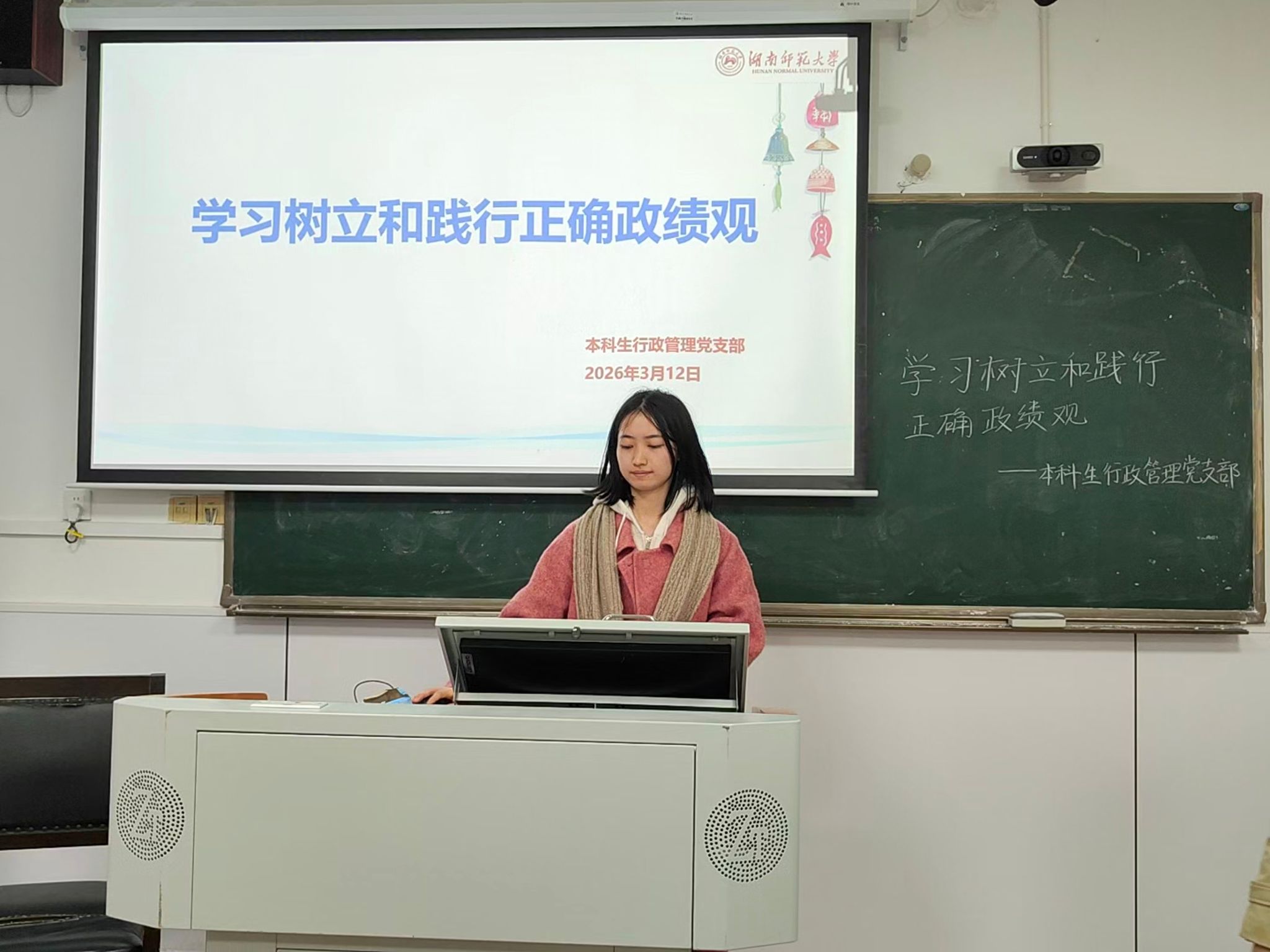 (通讯员 柴玥琪 吴祖乐 盛若水)为深入学习贯彻习近平总书记关于树立和践行正确政绩观的重要论述,落实“立党为公、为民造福、科学决策、真抓实干”总要求,3月12日下午,beats365官方网站本科生行政管理党支部(以下简称“行管党支部”)于景德楼中栋109教室开展树立和践行正确政绩观主题理论学习活动,刘敏佳担任主讲。
