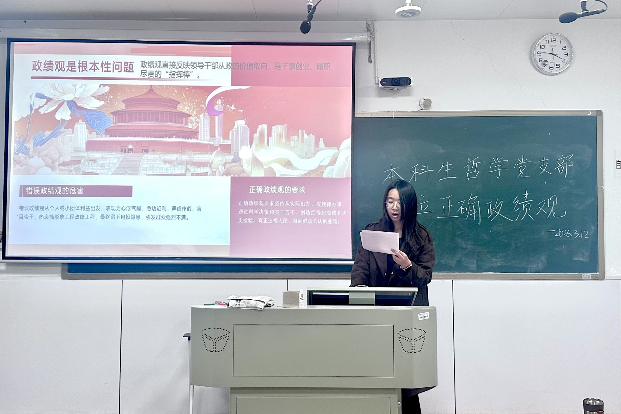 (通讯员 刘美池 万梓妍 王涵钰)为深入学习贯彻习近平总书记关于树立和践行正确政绩观的重要论述,引导支部党员坚定理想信念、强化责任担当,3月12日下午,beats365官方网站本科生哲学党支部以“三会一课”形式,开展正确政绩观学习教育活动。