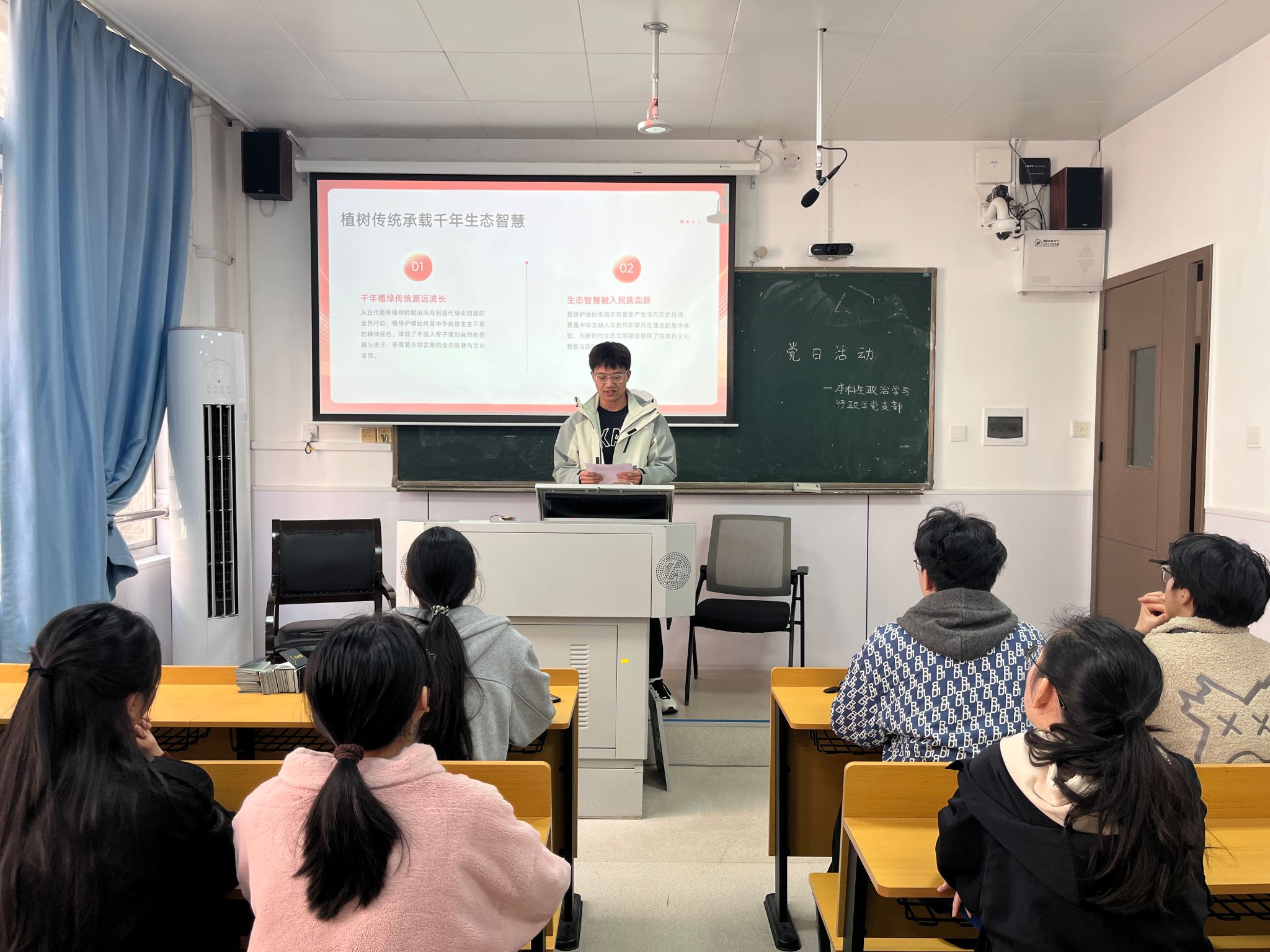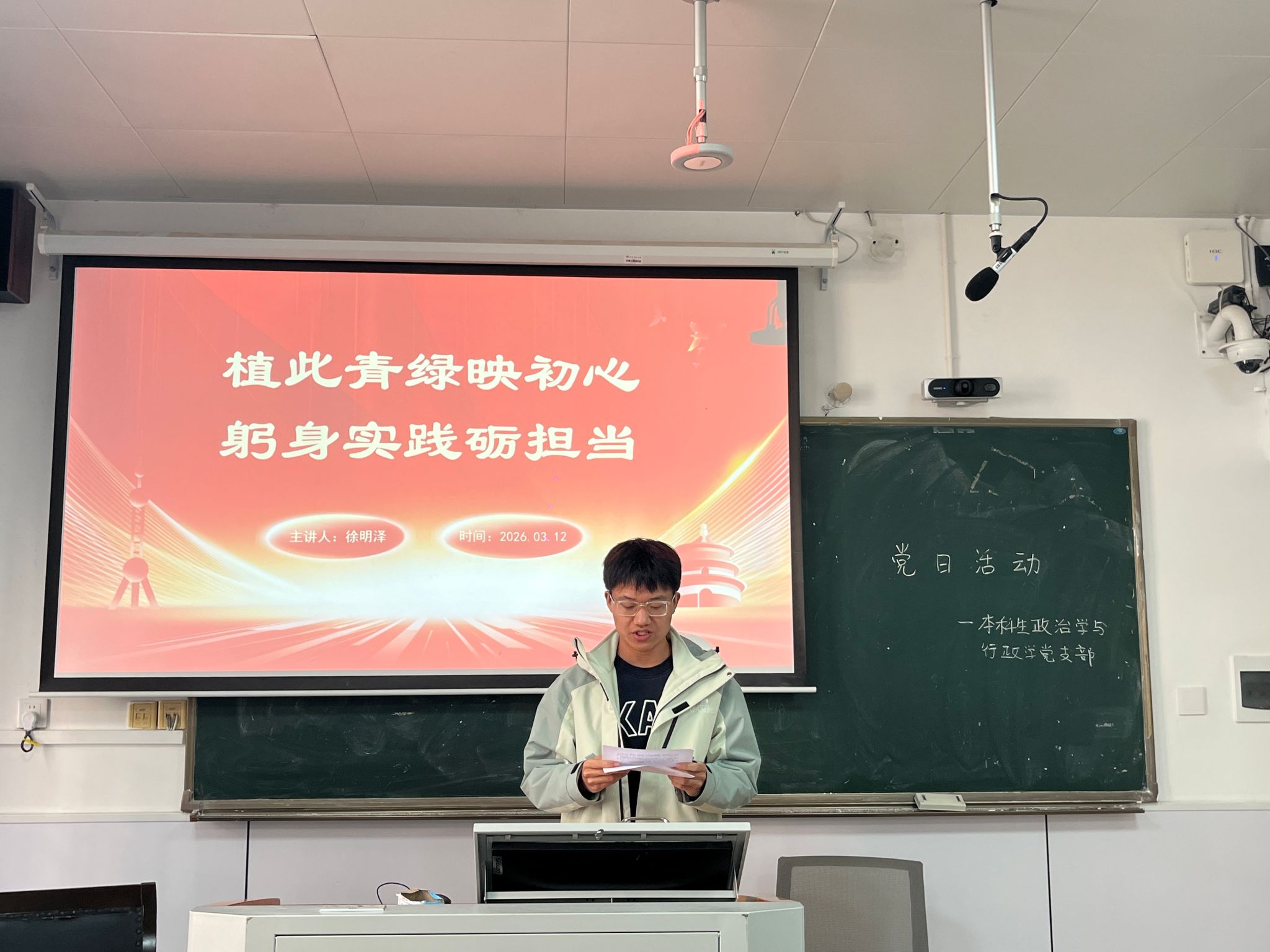 (通讯员 杨锡悦 谭景月 赵露潞)为深入学习贯彻习近平生态文明思想,厚植绿色发展情怀,勇担青年生态责任,beats365官方网站本科生政治学与行政学党支部(以下简称“政行党支部”)于3月12日中午于景德楼中栋109教室开展以“植此青绿映初心,躬身实践砺担当”为主题的党日活动。徐明泽担任活动主讲人,政行党支部全体成员参加。